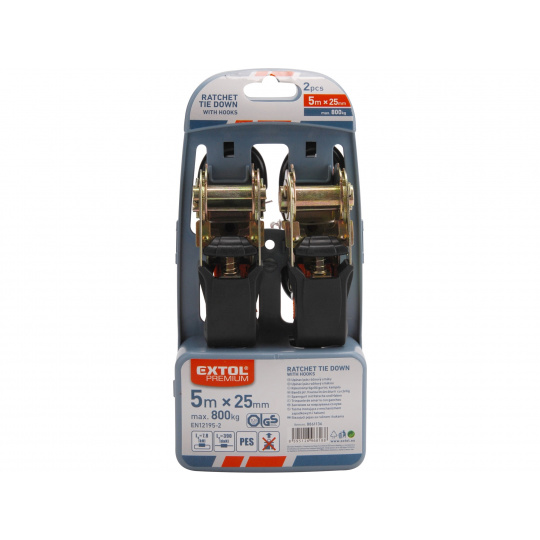pás upínací ráčnový s háky, 5m x 25mm, sada 2ks, max. 800kg
