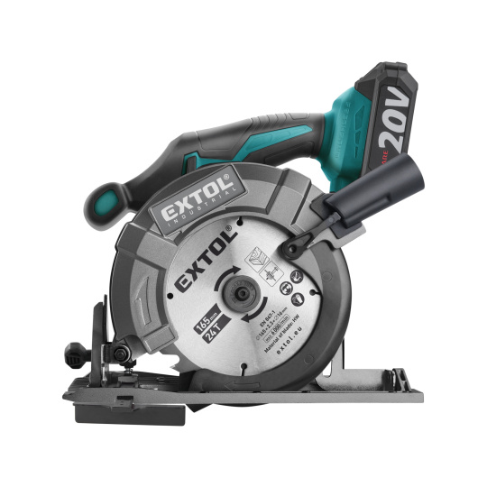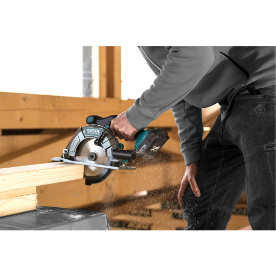 Brushless kotoučová pila je navržena tak, aby uživatelům poskytla výkonné a snadné řezání při různých instalatérských, elektrických, rámovacích, dokončovacích a tesařských pracích. Pila je poháněná nejmodernějším „brushless" motorem s 3650 ot./min umožňuje uživatelům rychle a snadno řezat tvrdým materiálem. Tento nový typ motoru má vyšší životnost, je výkonnější a má menší spotřebu el. energie než klasické motory s uhlíkovými kartáči. Horní a spodní kovový ochranný kryt poskytují vynikající ochranu kotouče při pádu. Gumová měkká rukojeť je ergonomicky navržena tak, aby uživatelům poskytovala vynikající pohodlí a vyvážení pro snadno ovladatelné řezy. Pro běžnou práci dostačují jeden nebo dva 2000mAh akumulátory, které můžete rychle nabít v rychlonabíječce, pro náročnější nebo delší práci doporučujeme větší akumulátory s kapacitou 4000–8000mAh. Akumulátor lze použít ve všech typech nářadí řady EXTOL SHARE20V. Díky použité Li-ion technologii je ho možné kdykoliv dobíjet, aniž by se tím snižovala jeho kapacita. Li-ion akumulátor ztrácí energii vlivem samovybíjení velmi pomalu a vydrží dlouho nabitý a připravený k použití.