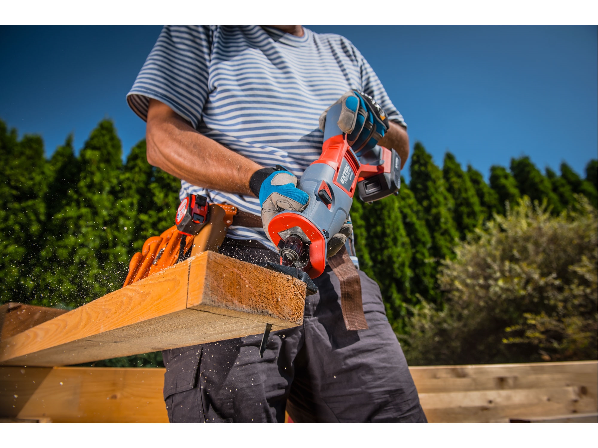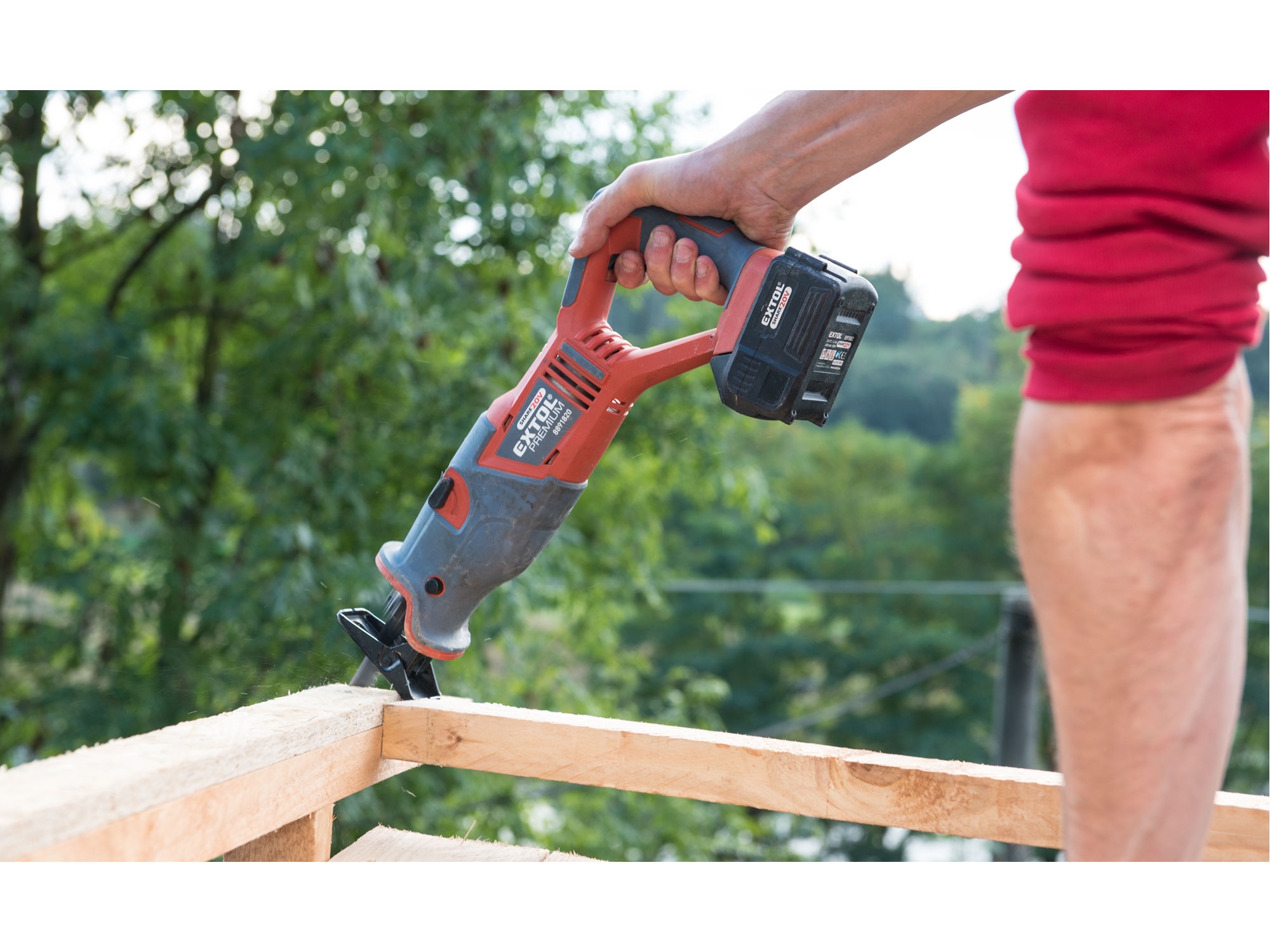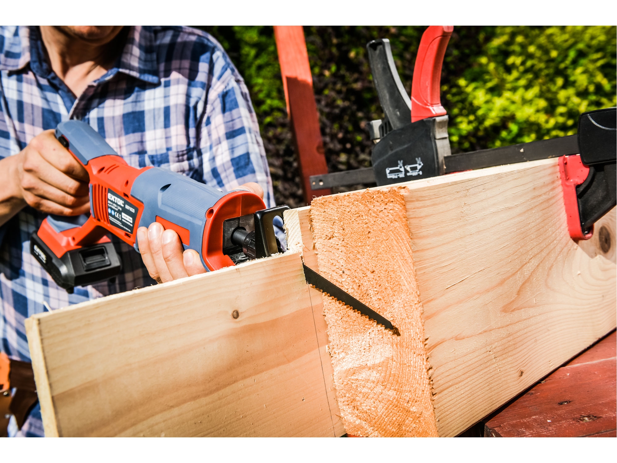 Aku pila ocaska je určena k řezání dřeva, umělé hmoty, kovů a jiných podobných materiálů při práci v dílně, garáži nebo na zahradě. Pružný pilový list umožňuje provádět nejen přímé a obloukové řezy, ale také řezy ve špatně přístupných místech (v rozích, podél zdi), prořezávání stromů. Hlavní výhodou této pily je akumulátorový pohon, který dovoluje si tuto pilu vzít s sebou tam kde s ní potřebujete pracovat, bez ohledu na to, jestli tam je rozvod elektrické energie. Pila má bezpečnostní pojistku proti náhodnému spuštění a je vybavena nastavitelným předkmitem, který si můžete upravit v závislosti na řezaném materiálu. Pro běžnou práci dostačují jeden nebo dva 2000mAh akumulátory, které můžete rychle nabít v rychlonabíječce, pro náročnější nebo delší práci doporučujeme větší akumulátory s kapacitou 4000–8000mAh. Akumulátor lze použít ve všech typech nářadí řady EXTOL SHARE20V. Díky použité Li-ion technologii je ho možné kdykoliv dobíjet, aniž by se tím snižovala jeho kapacita. Li-ion akumulátor ztrácí energii vlivem samovybíjení velmi pomalu a vydrží dlouho nabitý a připravený k použití.