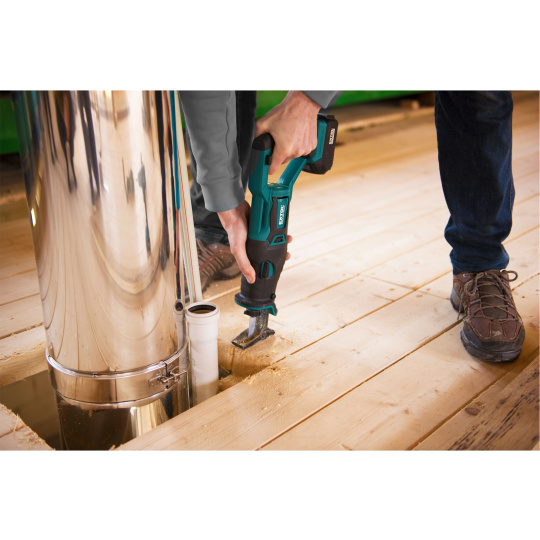 Brushless aku pila ocaska je určena k řezání dřeva, umělé hmoty, kovů a jiných podobných materiálů při práci v dílně, garáži nebo na zahradě. Pila je poháněná nejmodernějším „brushless" motorem. Tento nový typ motoru má vyšší životnost, je výkonnější a má menší spotřebu el. energie než klasické motory s uhlíkovými kartáči. Pružný pilový list umožňuje provádět nejen přímé a obloukové řezy, ale také řezy ve špatně přístupných místech (v rozích, podél zdi), prořezávání stromů. Hlavní výhodou této pily je akumulátorový pohon, který dovoluje si tuto pilu vzít s sebou tam kde s ní potřebujete pracovat, bez ohledu na to, jestli tam je rozvod elektrické energie. Pila má bezpečnostní pojistku proti náhodnému spuštění a je vybavena nastavitelným předkmitem, který si můžete upravit v závislosti na řezaném materiálu. Pro běžnou práci dostačují jeden nebo dva 2000mAh akumulátory, které můžete rychle nabít v rychlonabíječce, pro náročnější nebo delší práci doporučujeme větší akumulátory s kapacitou 4000–8000mAh. Akumulátor lze použít ve všech typech nářadí řady EXTOL SHARE20V. Díky Li-ion technologii je možné akumulátory kdykoliv dobíjet, aniž by se tím snižovala jejich kapacita. Li-ion akumulátor ztrácí energii vlivem samovybíjení velmi pomalu a vydrží dlouho nabitý a připravený k použití.