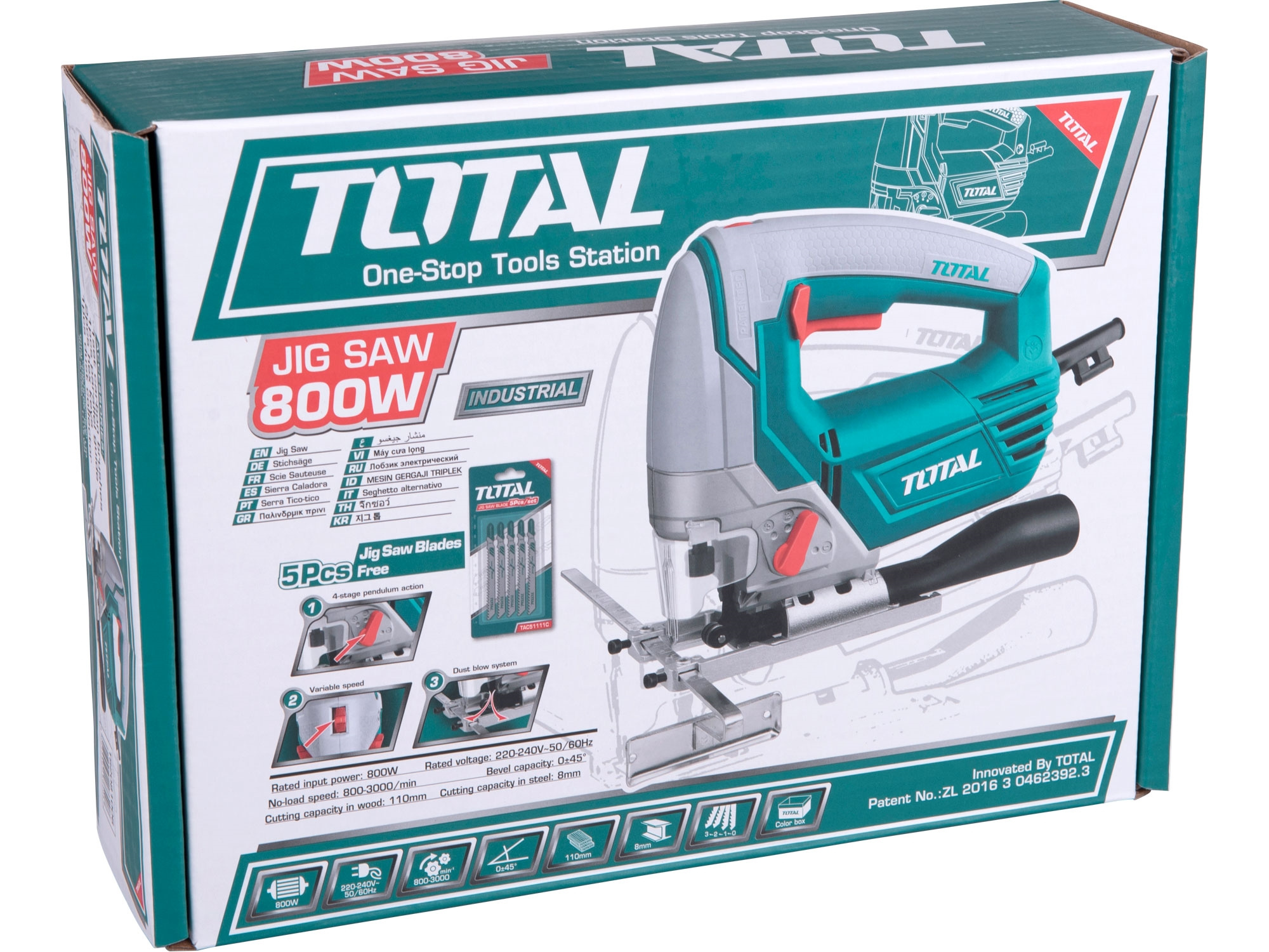 Přímočará pila je určena k provádění dělicích a tvarových řezů zejména do dřeva a dřevotřísky, dále také do kovu, umělých hmot, gumy a keramiky s použitím k tomu určených pilových plátků. Pila je vybavena regulací otáček motoru a regulací síly předkmitu, pomocí kterých si můžete upravit chod pily při řezání v různých materiálech. Pila má 800W a až 3000 otáček/min. Standardně při řezání pila odfukuje piliny z místa řezání, ale pokud k ní připojíte vysavač, můžete tento odfuk vypnout a piliny jen odsávat do vysavače, čímž dosáhnete mnohem čistějšího pracovního místa. Pila má pevnou kovovou základnu pro přesné vedení řezu a rovněž příjemnou pogumovanou protiskluzovou rukojeť. Je dodávána se 3ks pilových plátků na dřevo.