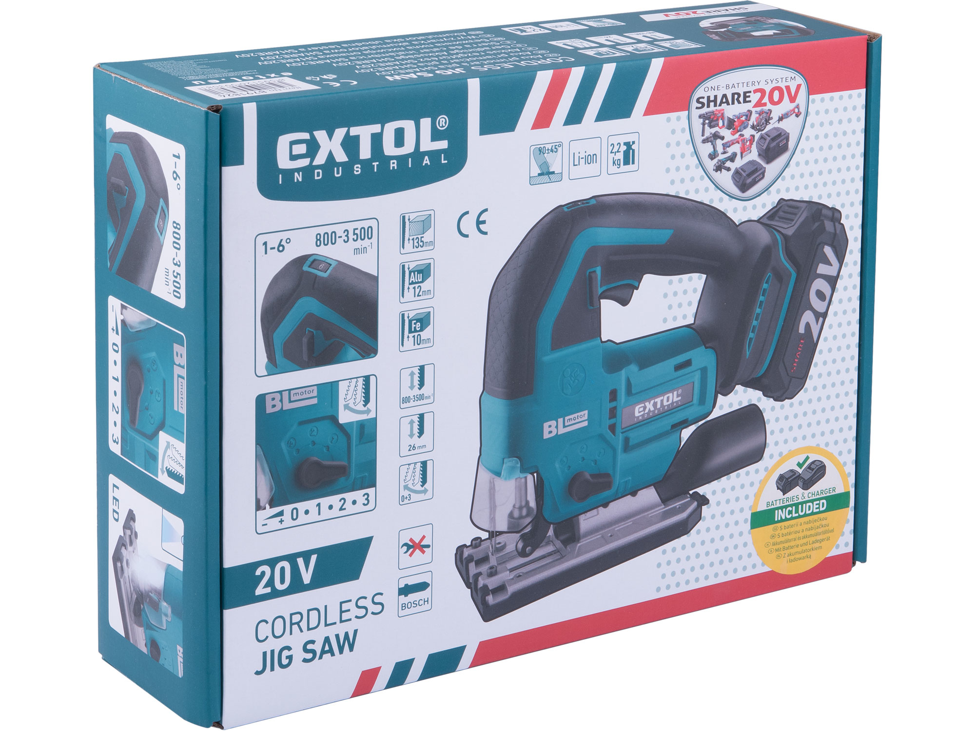 Aku přímočará pila SHARE20V od EXTOL INDUSTRIAL je všestranný nástroj pro řezání dřeva, dřevotřísky, kovů, plastu a mnoha dalších materiálů. Ať už pracujete na stavbě, v tesařské dílně nebo při montáži suchých staveb, tato pila nabídne výkon a spolehlivost, na které se jako profesionál můžete každý den spolehnout. Výměna pilových plátků je rychlá a bezpečná díky systému kompatibilnímu s uchycením „Bosch" – bez nástrojů, během pár vteřin. Lze použít plátek prakticky jakéhokoliv výrobce s tímto standardním úchytem, což profesionálovi střídajícímu materiály i typy řezů dává cennou flexibilitu. Srdcem pily je bezuhlíkový motor – výrazně účinnější, méně se zahřívá a má delší životnost než klasické motory. Pila je připravena pro přesnou práci i při velké zátěži a výkon zůstává stabilní i v náročných podmínkách. Pozvolný rozběh zabrání trhnutí na začátku řezu a přispívá k přesnějšímu vedení hned od první chvíle. Regulace rychlosti kmitů a nastavení síly předkmitu umožňují přizpůsobit styl řezání každému materiálu. LED světlo se automaticky rozsvítí při stisku spínače a osvětlí pracovní místo. Pila standardně odfukuje piliny z místa řezu, ale má také nástavec pro připojení vysavače. Gumová vrstva v místě úchopu tlumí vibrace a snižuje únavu i při celodenní práci. Napájení zajišťuje univerzální akumulátor SHARE20V, kompatibilní s celou řadou nářadí systému – utahováky, pilami, kompresory a dalšími. Baterie má indikátor nabití, není náchylná na paměťový efekt a i při delším uskladnění zůstane připravená k použití. Rychlonabíječka ji dobije přibližně za 50 minut. Součástí balení je pila, rychlonabíječka a akumulátor 2Ah – vše, co potřebujete pro okamžité nasazení na stavbě i v dílně.