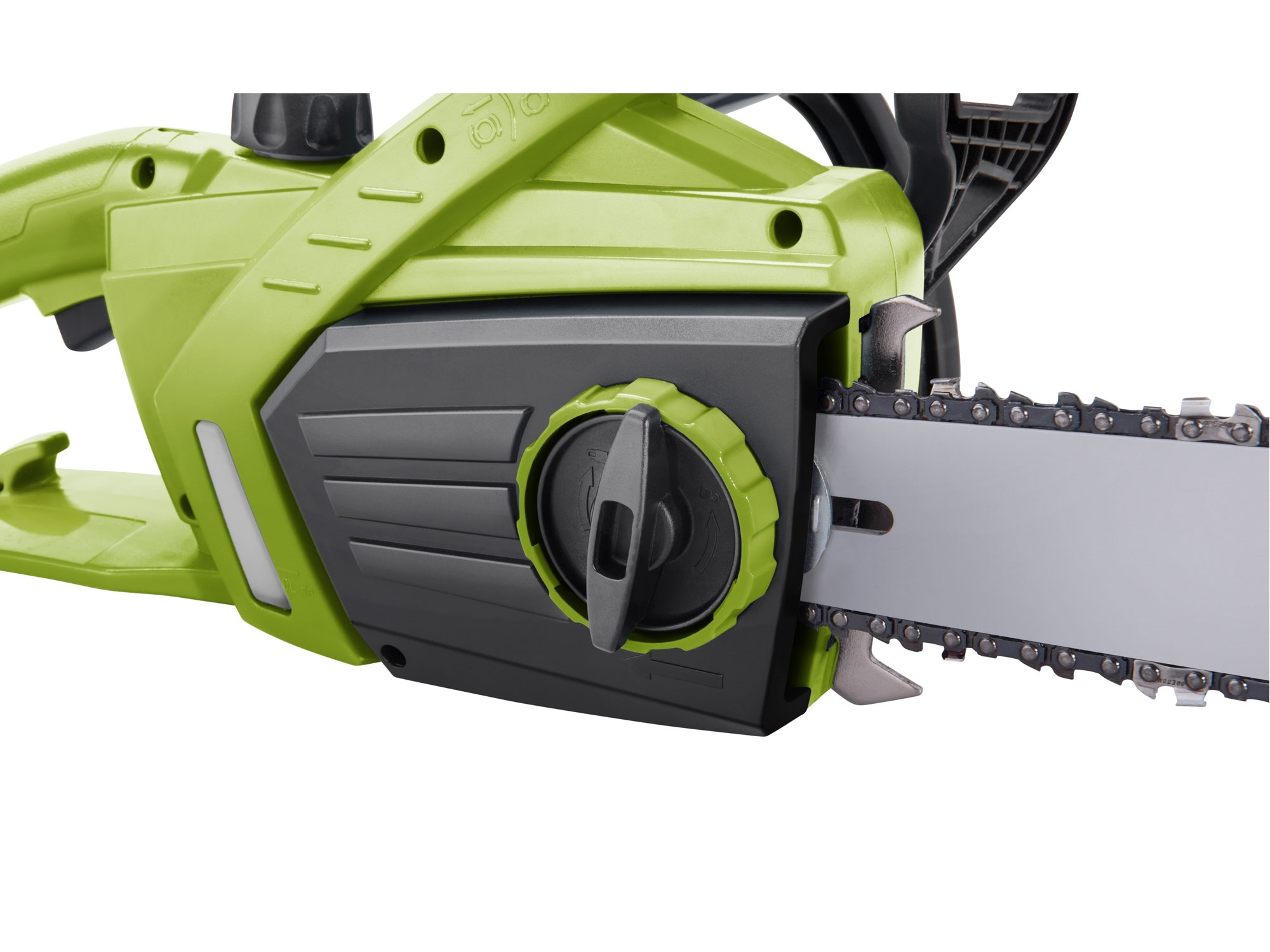Elektrická řetězová pila s příkonem 1800W a řeznou délky lišty 35cm je určena ke kácení stromů, k odvětvování a zkracování kmenů a k řezání kmenů či silných větví na palivové dřevo při použití v domácích zahradách či v domácím prostředí.