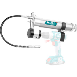 1ks vysokotlaké nylonové mazací hadice, 1ks úchytka, určeno pro Total AKU vrtačky, šroubováky a utahováky, objem 400ml, doporučený pracovní tlak 4 000psi, maximální tlak 8 000psi,