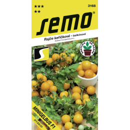 MINIGELBUS F1SM (kód 3168) – kolekce do nádob – velmi rané kompaktní rajče se žlutými kulatými třešňovými plody (15–20 gramů). Vhodné i do menších nádob. Výška rostliny je 20–30 cm v závislosti na velikosti nádoby.