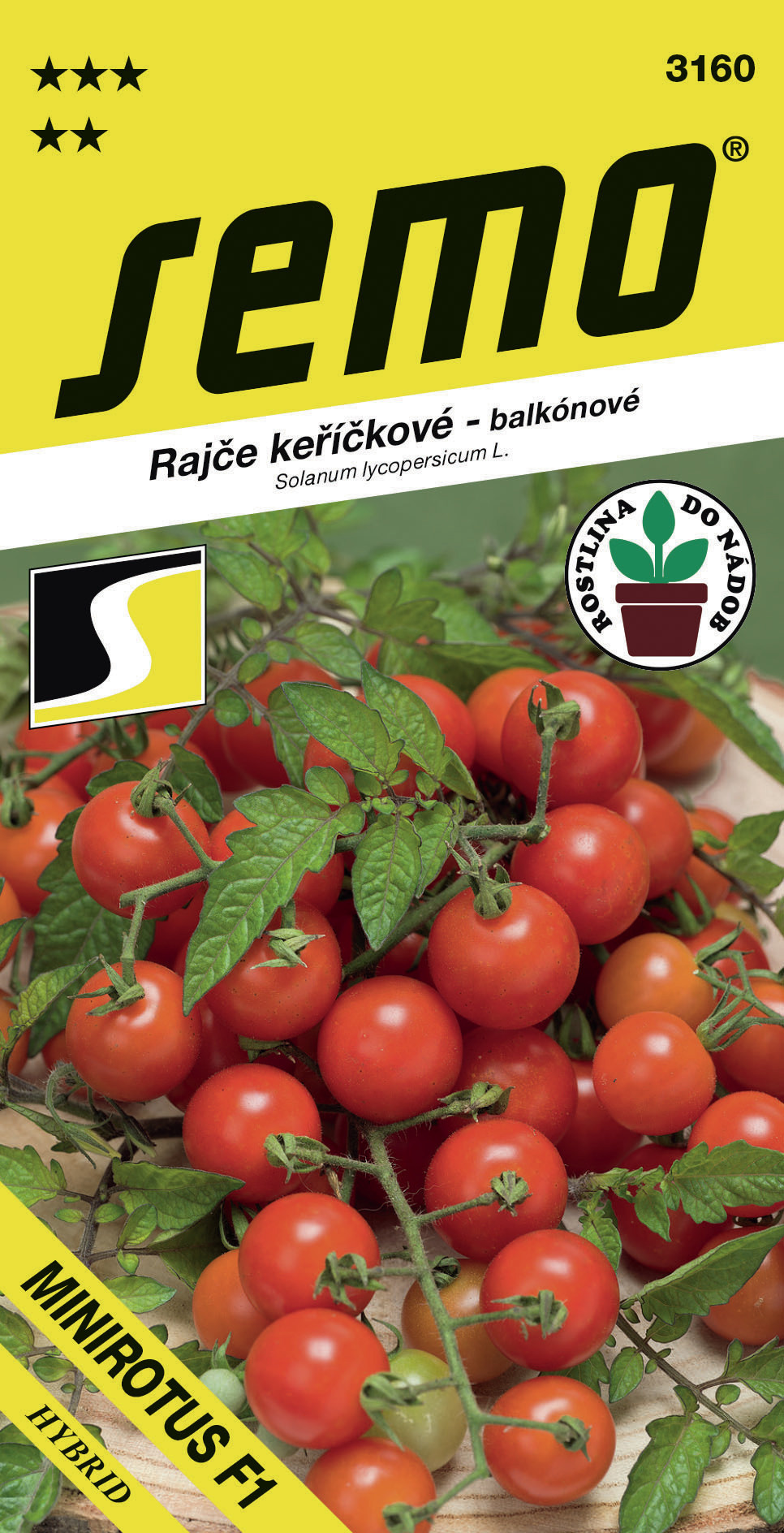 MINIROTUS F1SM (kód 3160) – kolekce do nádob – velmi rané kompaktní keříčkové rajče s červenými kulatými třešňovými plody (15–20 gramů). MINIROTUS F1 je inspirován rajčetem RED RUBIN. Tuto starší odrůdu však překonává výnosem i zdravotním stavem. Vhodné i do menších nádob. Výška rostliny je 20–30 cm v závislosti na velikosti nádoby.