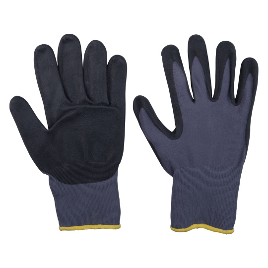 rukavice nylonové, bezešvé, polomáčené v nitrilu, velikost 8"