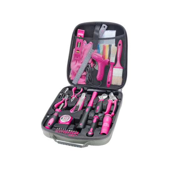 Univerzální sada navržená pro dívky, ženy a dámy, se kterou Vás nic nezaskočí. Kdykoli budete potřebovat něco přeměřit, zašroubovat, povolit či utáhnout, uříznout, vyvážit, zatlouct či natřít, slepit, na něco si posvítit, anebo si třeba ustříhnout růži v zahradě, tahle sada v elegantním měkkém kufříku vám bude vždy po ruce – a Vy budete naprosto nezávislá!