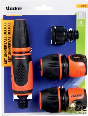 Sada DeLuxe obsahuje dvě rychlospojky, postřikovací trysku a šroubení.