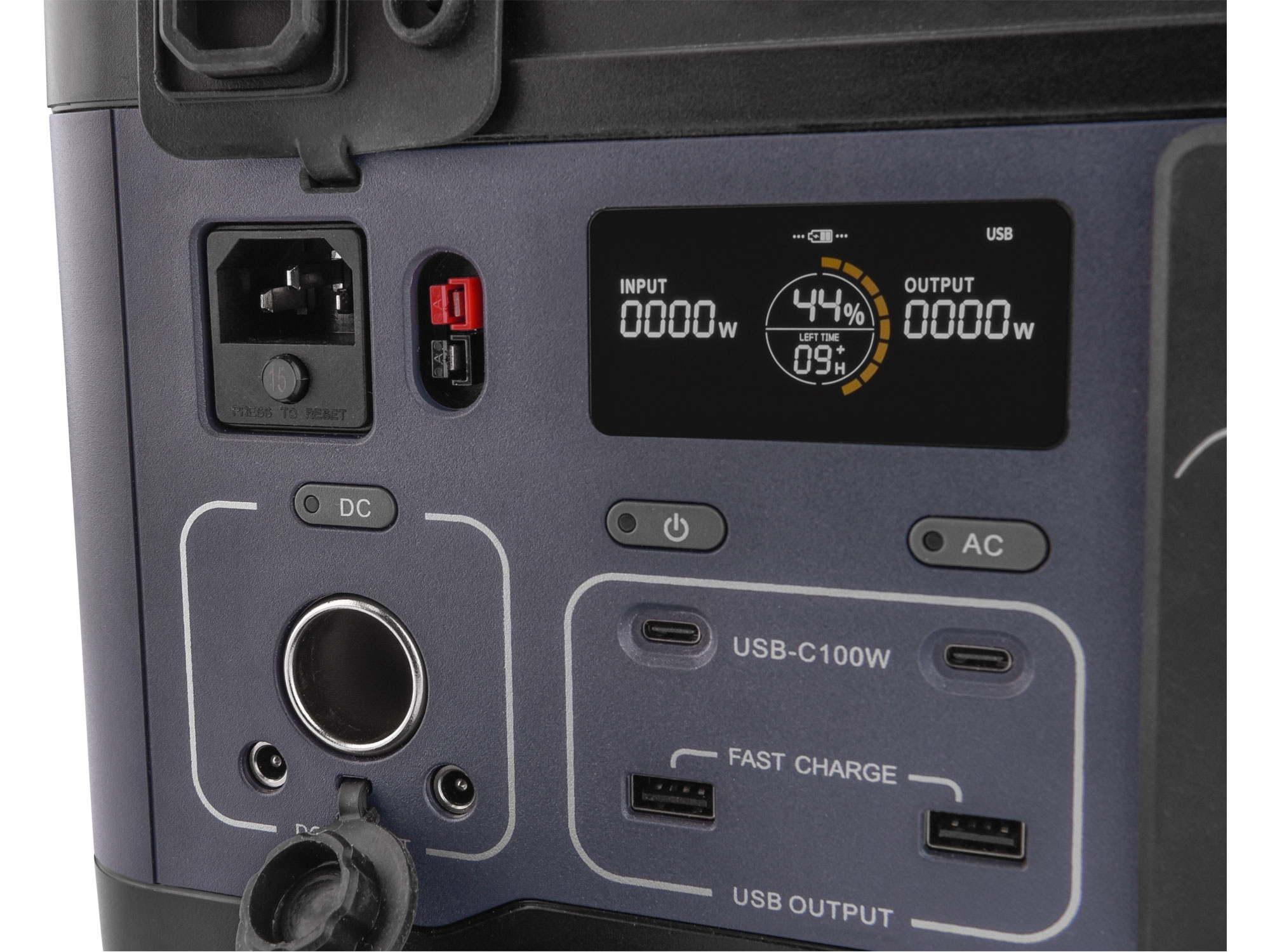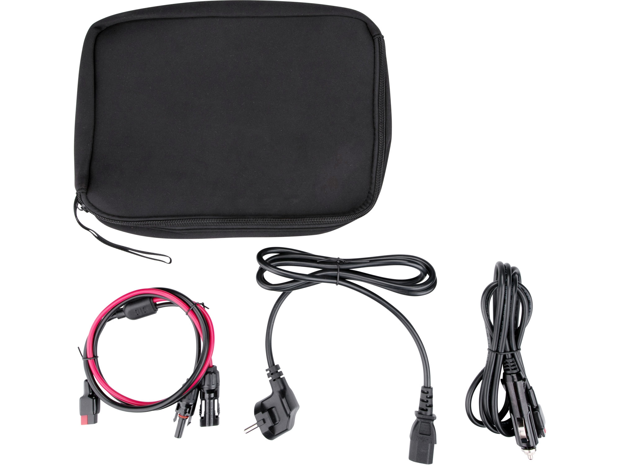 napájecí kabely: 230V, 12V autozásuvka, kabel pro solární panel (anderson–MC4)