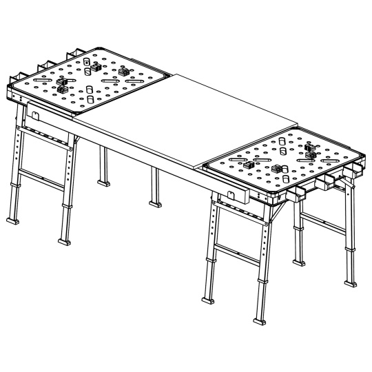Pracovní lehce přenosný stůl FORTUM vám poskytne výškově nastavitelnou pracovní plochu o rozměrech 850x600mm z MDF materiálu s množstvím výřezů pro vymezovací/opěrné zarážky nebo úpínací svěrky. Nosnost stolu je 450kg . Tento stůl lze pomocí 2ks odnímatelných bočních úchytů spojit a zafixovat s dalším stolem nebo mezi dva tyto stoly na dvojici trámkových dřevěných profilů nainstalovat libovolně dlouhou pracovní desku