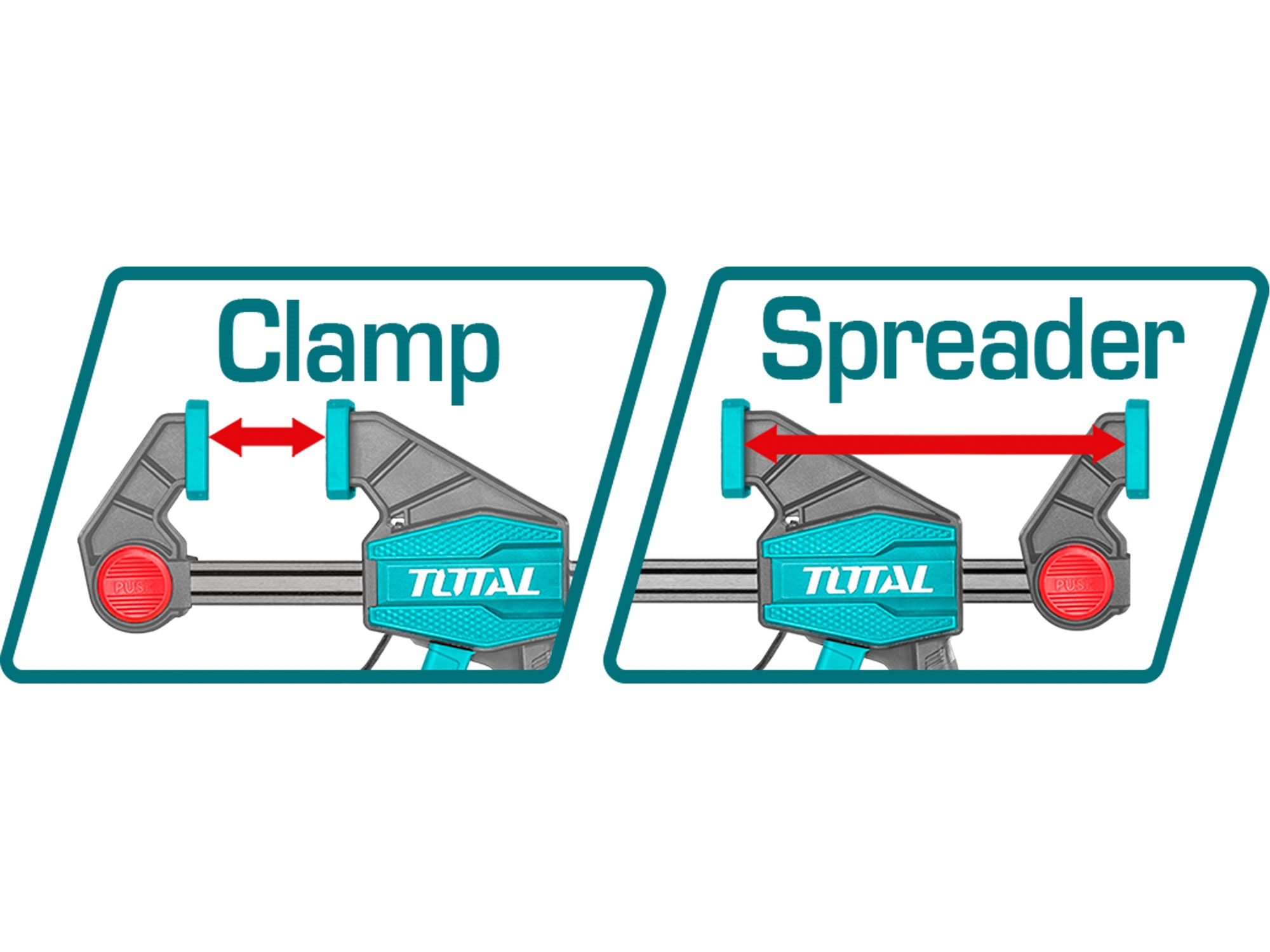 Rozměr spony: 63x450mm Obě čelisti jsou otočné a posuvné a díky tlačítku rychloposuvu umožňují rychlé přenastavení ramen před dotažením Maximální upínací síla: 60 KG Tloušťka a šířka železného pravítka: 6x18mm Industriální kvalita.