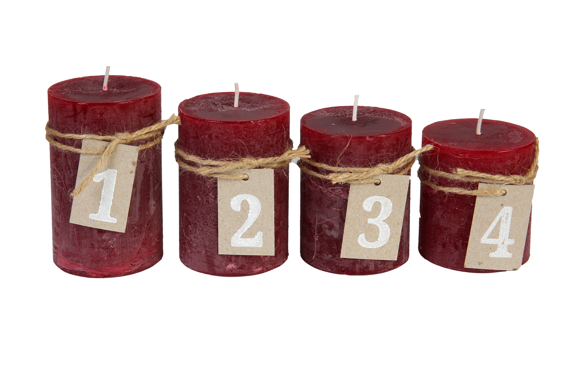 Svíčka adventní schody 60x70/80/90/100 mm rustik- bordó (4ks)