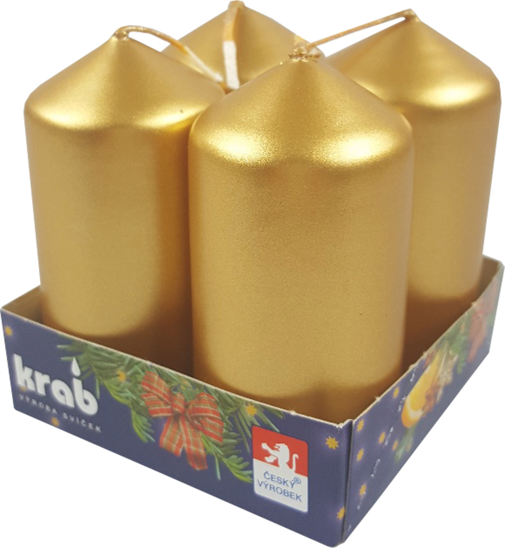 Svíčka adventní válec 40x80 mm - metalická zlatá (4ks)