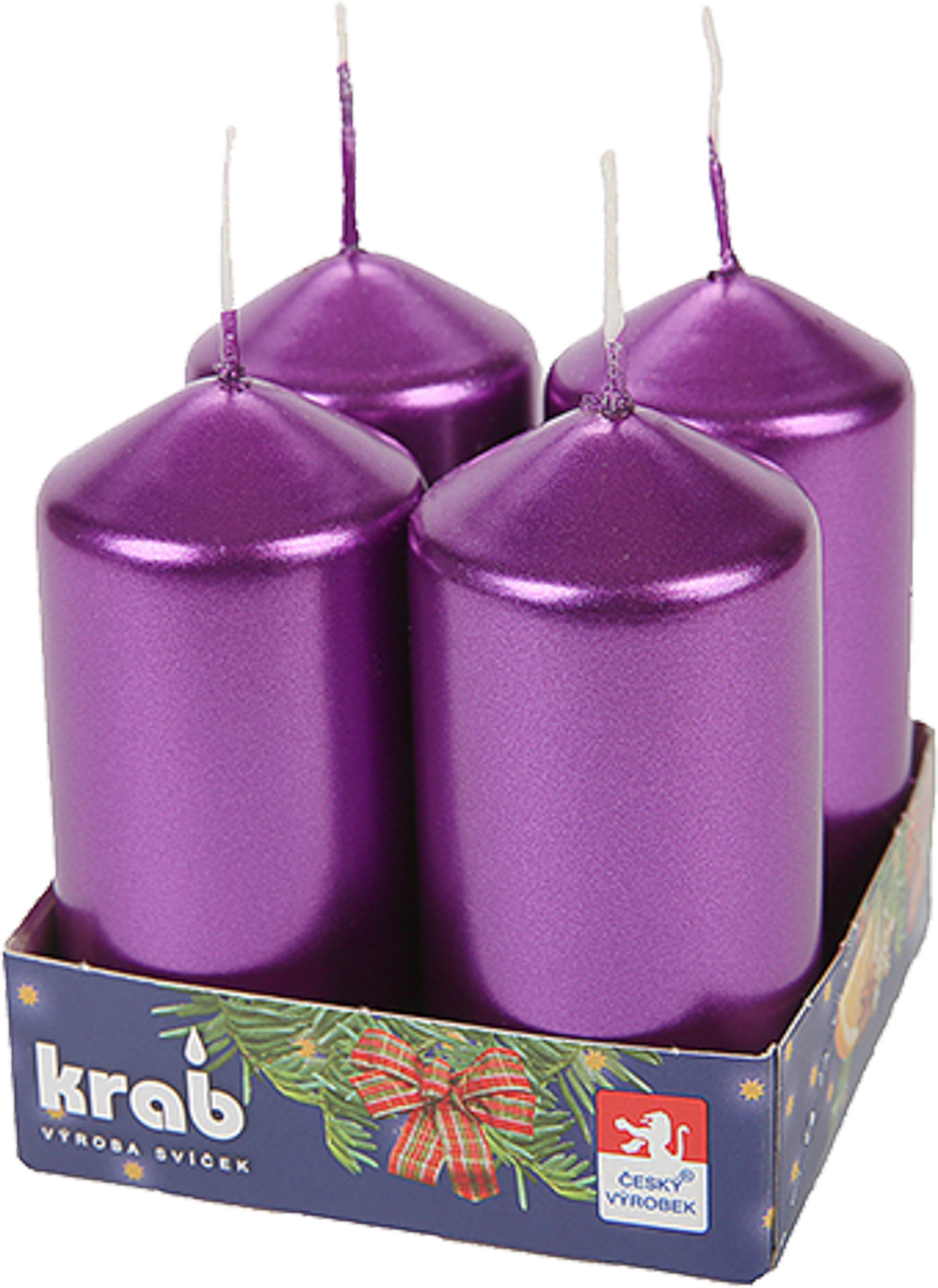 Svíčka adventní válec 60x80 mm - metalická fialová (4ks)