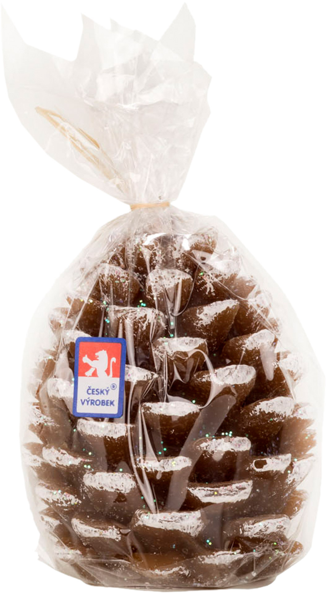 Svíčka vánoční šiška s flitrem v sáčku 9 cm - hnědá