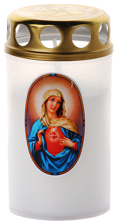 Svíčka Vatikánka určena na hřbitovy v plastovém průhledném obalu s nálepkou s různými náboženskými motivy. Její součástí je plechové víčko, které slouží jako ochrana před povětrnostními vlivy. Doba hoření, až 40 hodin, závisí na klimatických podmínkách. Určeno pro venkovní použití.