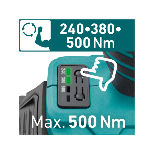 Výkonný rázový brushless aku utahovák s vysokým max. kroutícím momentem 500Nm Vám poskytuje výkon, který potřebujete k dokončení široké škály utahovacích operací – utahování a povolování šroubů. Utahovák je poháněná nejmodernějším „brushless" motorem. Tento nový typ motoru má vyšší životnost, je výkonnější a má menší spotřebu el. energie než klasické motory s uhlíkovými kartáči. Utahovací moment lze elektronicky nastavit na 3 různé momenty: 240/380/500Nm, při povolování pracuje utahovák na nejvyšší otáčky a můžete si zapnout funkci AUTO STOP, která při povolování zastaví utahovák po pár sekundách, což je ideální pro krátké šrouby. Kombinace vysokého momentu s rázovým mechanismem je zde zásadní, rázový úderný princip umožňuje povolit velmi pevně utažené nebo zkorodované spoje mnohem efektivněji než stejnoměrný krouticí moment, přičemž šetří jak zápěstí uživatele, tak samotný nástroj a spojovací materiál tím, že generované síly působí v krátkých, přesně cílených impulsech místo kontinuálního namáhání. Rázový mechanismus také zvyšuje sílu utahováku při šroubování a zároveň snižuje spotřebu baterie. Proto je při šroubování mnohem efektivnější než aku vrtačka a také zašroubuje více šroubů na jedno nabití baterie. Celokovová převodovka uložená v kovovém pouzdru zajišťuje bezchybný chod při i vysoké zátěži a přispívá k lepšímu odvodu tepla vznikajícího při práci. Svítilna osvětluje pracovní místo a má zpožděné vypnutí. Utahovák má gumové plošky pro ochranu odkládací plochy před nárazy a celá rukojeť je pokryta gumou, která snižuje přenos vibrací do ruky a zajišťuje lepší úchop. Pro běžnou práci dostačují jeden nebo dva 2000mAh akumulátory, které můžete rychle nabít v rychlonabíječce, pro náročnější nebo delší práci doporučujeme větší akumulátory s kapacitou 4000–8000mAh. Akumulátor lze použít ve všech typech nářadí řady EXTOL SHARE20V. Díky použité Li-ion technologii je ho možné kdykoliv dobíjet, aniž by se tím snižovala jeho kapacita. Li-ion akumulátor ztrácí energii vlivem samovybíjení velmi pomalu a vydrží dlouho nabitý a připravený k použití.