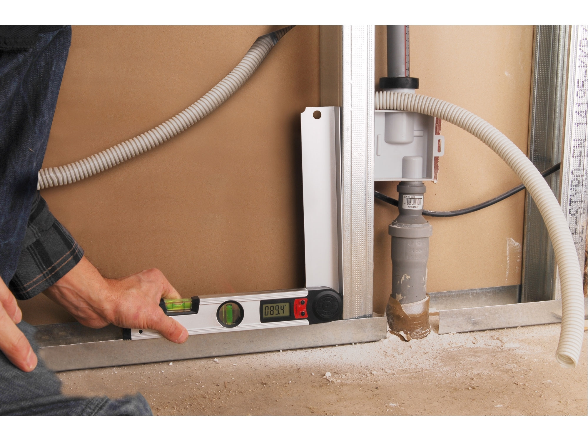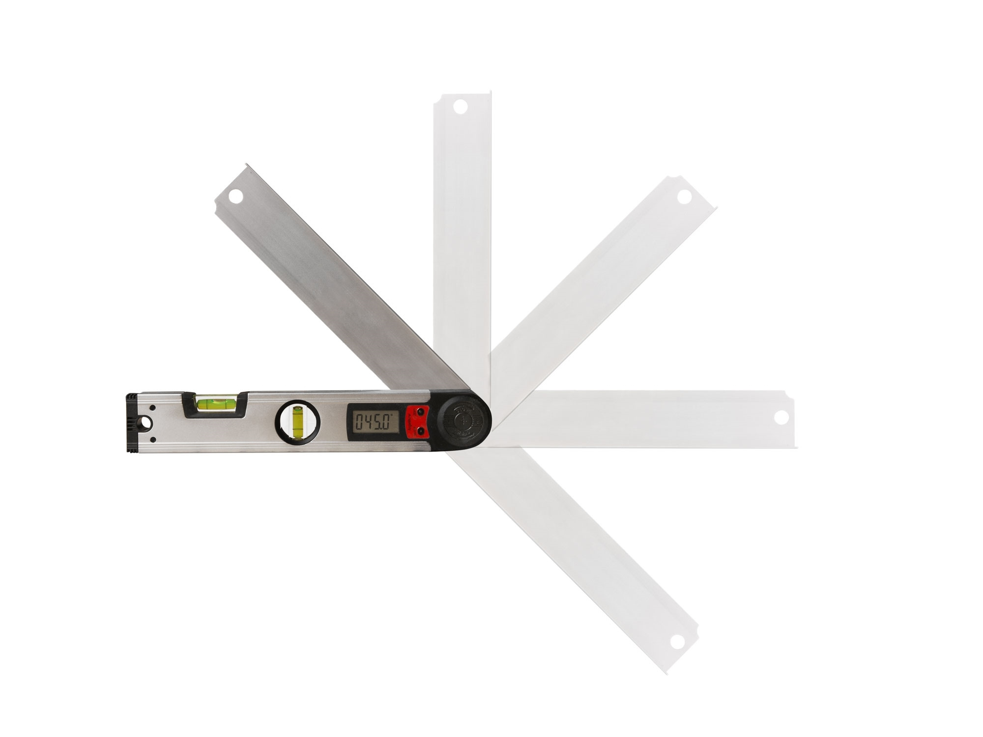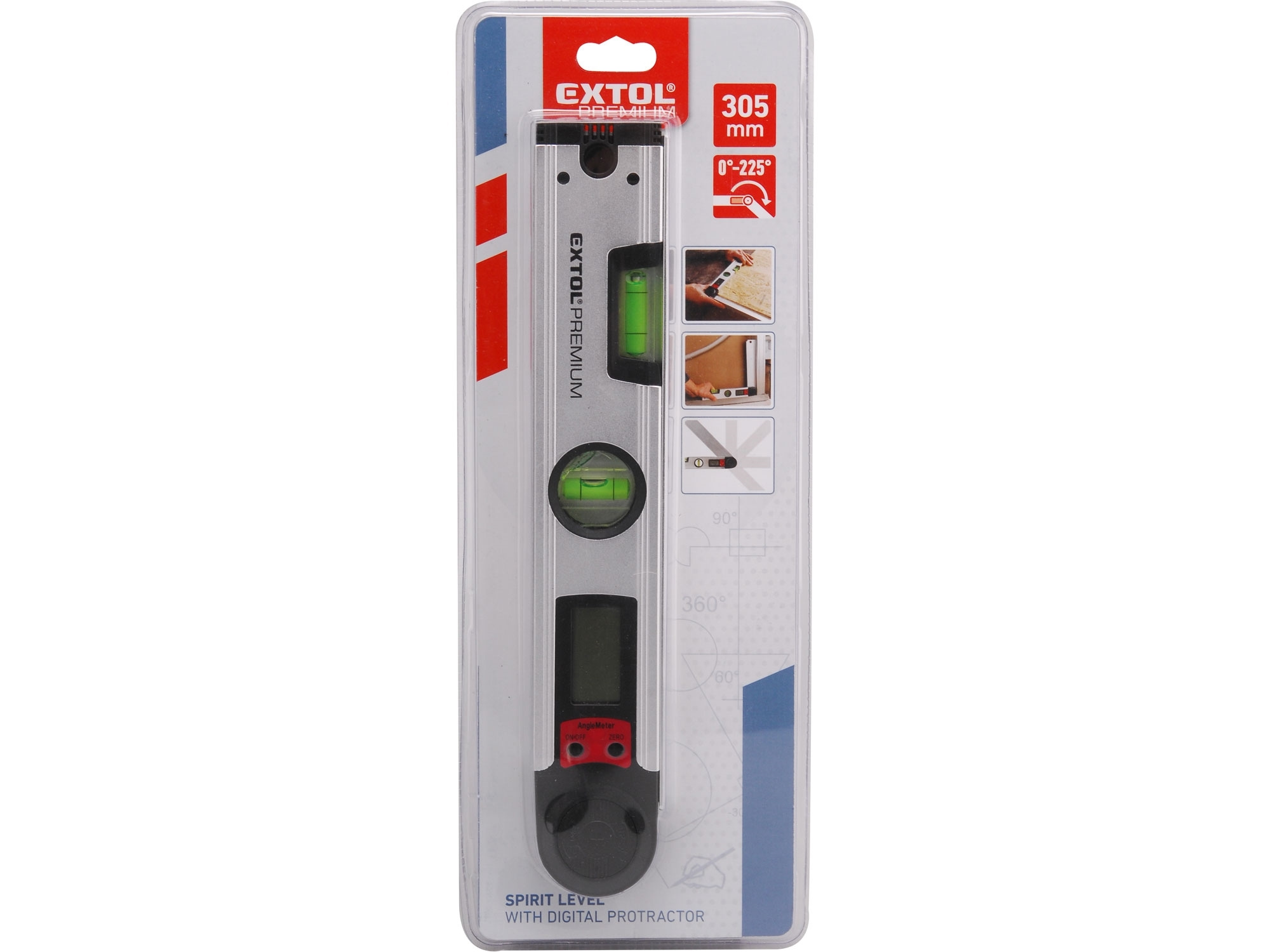 dvoulibelová vodováha, přesnost: 0,5mm/1m, 2 libely 0°a 90°, úhloměr: rozsah měření 0-225°s rozlišením 0,1° a přesností ±0,3°