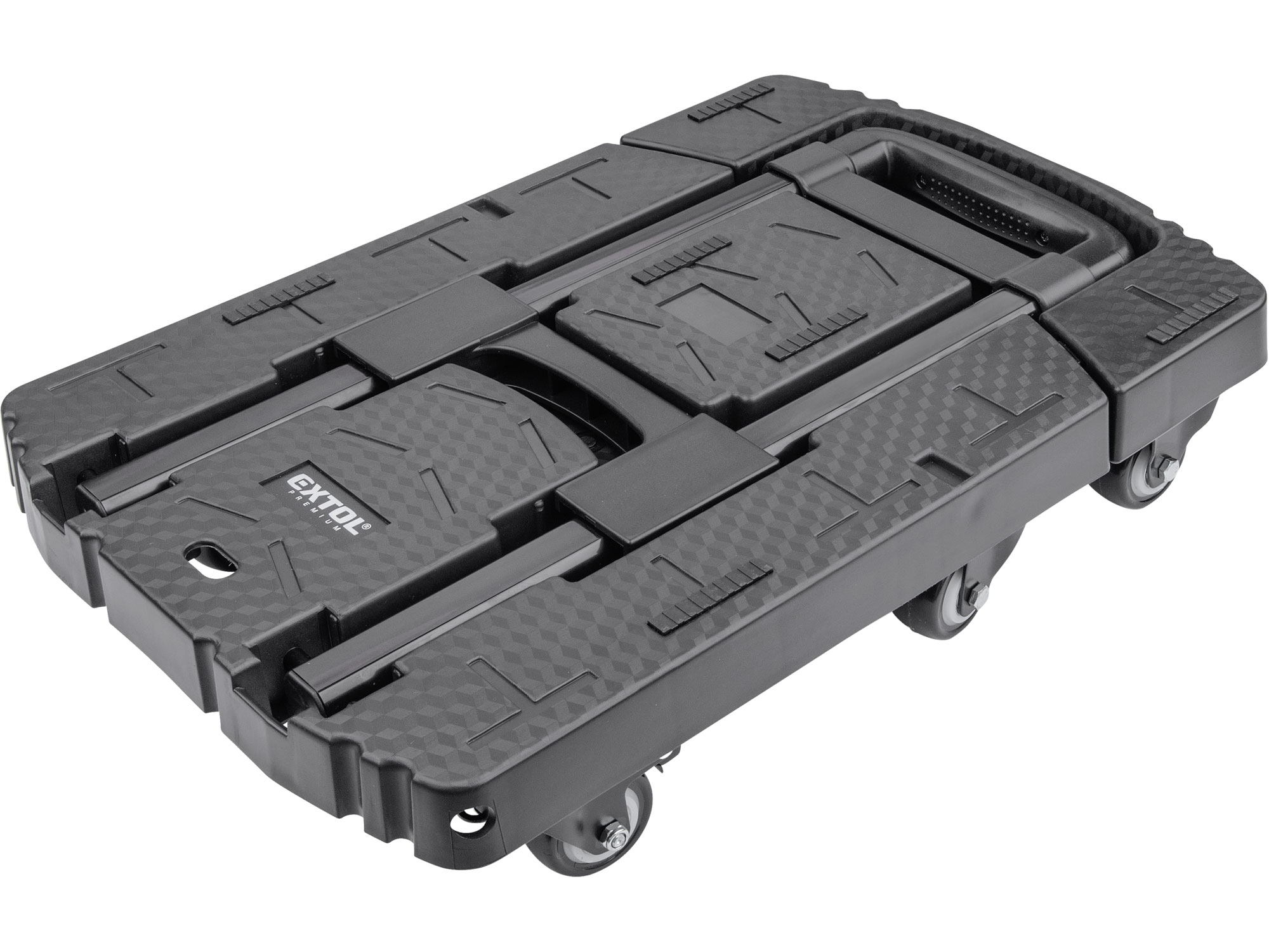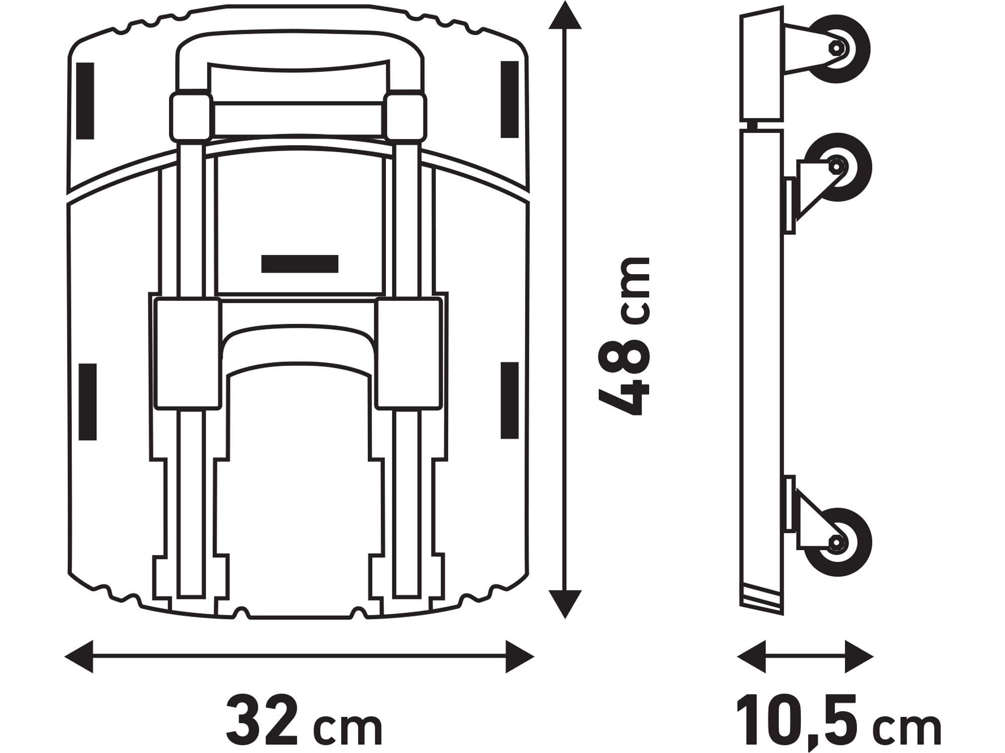 nastavitelná užitná plocha 48-60cm x 32cm, velikost ve složeném stavu 48 x 32 x 11cm, pevná konstrukce z PP s pryž. protiskluznými terčíky a teleskopickou rukojetí, hmotnost 3,5kg