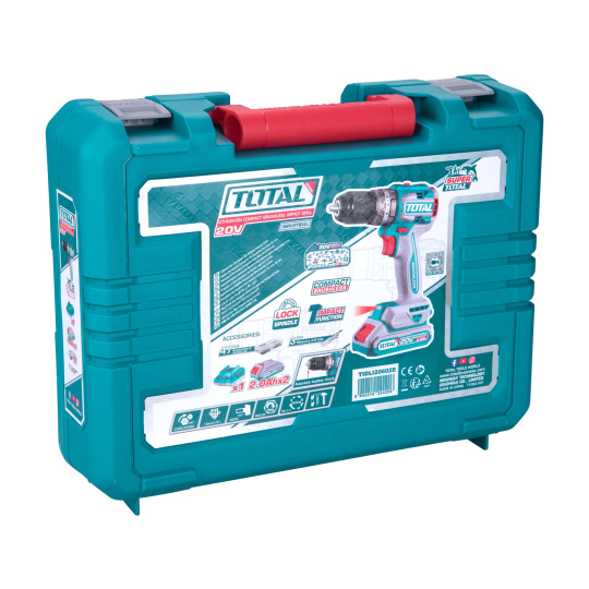 Nový typ aku vrtacího šroubováku s příklepem z řady industrial je vhodný pro všechny běžné pracovní úkoly a projekty v domácnosti, dílně a zahradě. Šroubovák má celokovovou hlavu, 22 stupňů utahovacích momentů + vrtání a vrtání s příklepem. Šroubovák má nový typ ergonomické antivibrační rukojeti pro příjemný úchyt a práci. Součástí šroubováku jsou dvě baterie 2000mAh a jeden kus rychlonabíječky. Jak baterie, tak nabíječka je kompatibilní se všemi stroji Total využívajícími baterie. Vše je uloženo v plastovém kufru pro snadnou přepravu. Je určen pro:- vrtání bez příklepu do dřeva, plastu i kovů- vrtání s příklepem do zdiva- utahování a povolování šroubů nebo vrutů• Nepřítomnost napájecího kabelu poskytuje svobodu a komfort při práci a manipulaci s nářadím. Nářadí lze tak s výhodou použít pro práci v místech, kde není možné použít elektrické nářadí s napájecím kabelem z důvodu nedostupnosti distribuční elektrické sítě. Toto nářadí je vybaveno systémem ochrany nářadí a akumulátoru, který v případě hrozícího přetížení nebo přehřátí automaticky odpojí napájení motoru. Systém tak chrání životnost nářadí i akumulátoru.