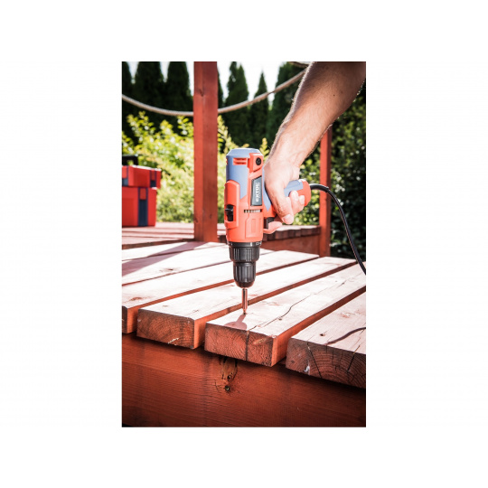 Elektrický dvourychlostní vrtací šroubovák je určen k vrtání bez příklepu do dřeva a kovu a k utahování nebo povolování šroubových spojů. Vrtací šroubovák v sobě spojuje velký utahovací moment standardního vrtacího aku šroubováku (akuvrtačky) s výdrží a stabilním výkonem elektrického nářadí napájeného z elektrické sítě. Elektrický vrtací šroubovák napájený z elektrické sítě je vhodný pro delší práce v dosahu elektrické zásuvky. Díky absenci akumulátoru a nabíječky tak lze mít výhody silné aku vrtačky za výrazně nižší cenu.