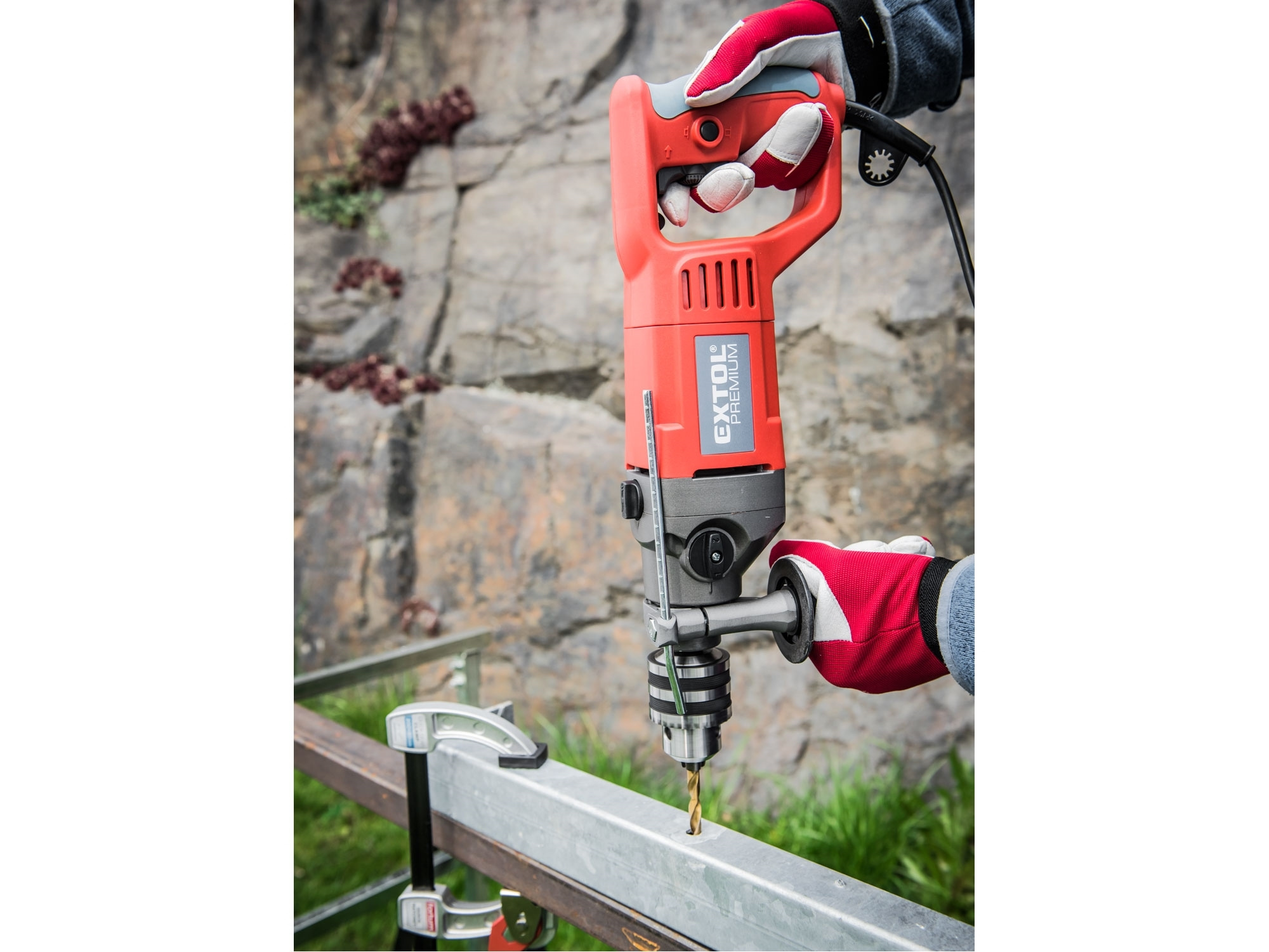 Velmi výkonná a robustní příklepová vrtačka se silným motorem o příkonu 1050W a sklíčidlovou hlavou s upínacím rozsahem 3–16mm je určena zejména pro náročné vrtací práce do tvrdých materiálů, ale je možné ji používat také pro vrtání do měkkých materiálů. Velká rukojeť ve tvaru "D" zajišťuje nejen pohodlné držení vrtačky při těžké práci, ale také chrání vaši ruku před zraněním. Díky silnému výkonu je možné ji používat např. s hadovitými vrtáky, pilovými vykružováky, korunkovými vrtáky nebo vykružovacími vrtáky apod. Provozní spínač umožňuje pozvolný a jemný rozběh otáček pro přesné bodové navrtávání, např. obkladů. Díky komfortnímu přepínání pravého/levého chodu lze bez komplikací vyjmout nástroj z vrtaného materiálu.