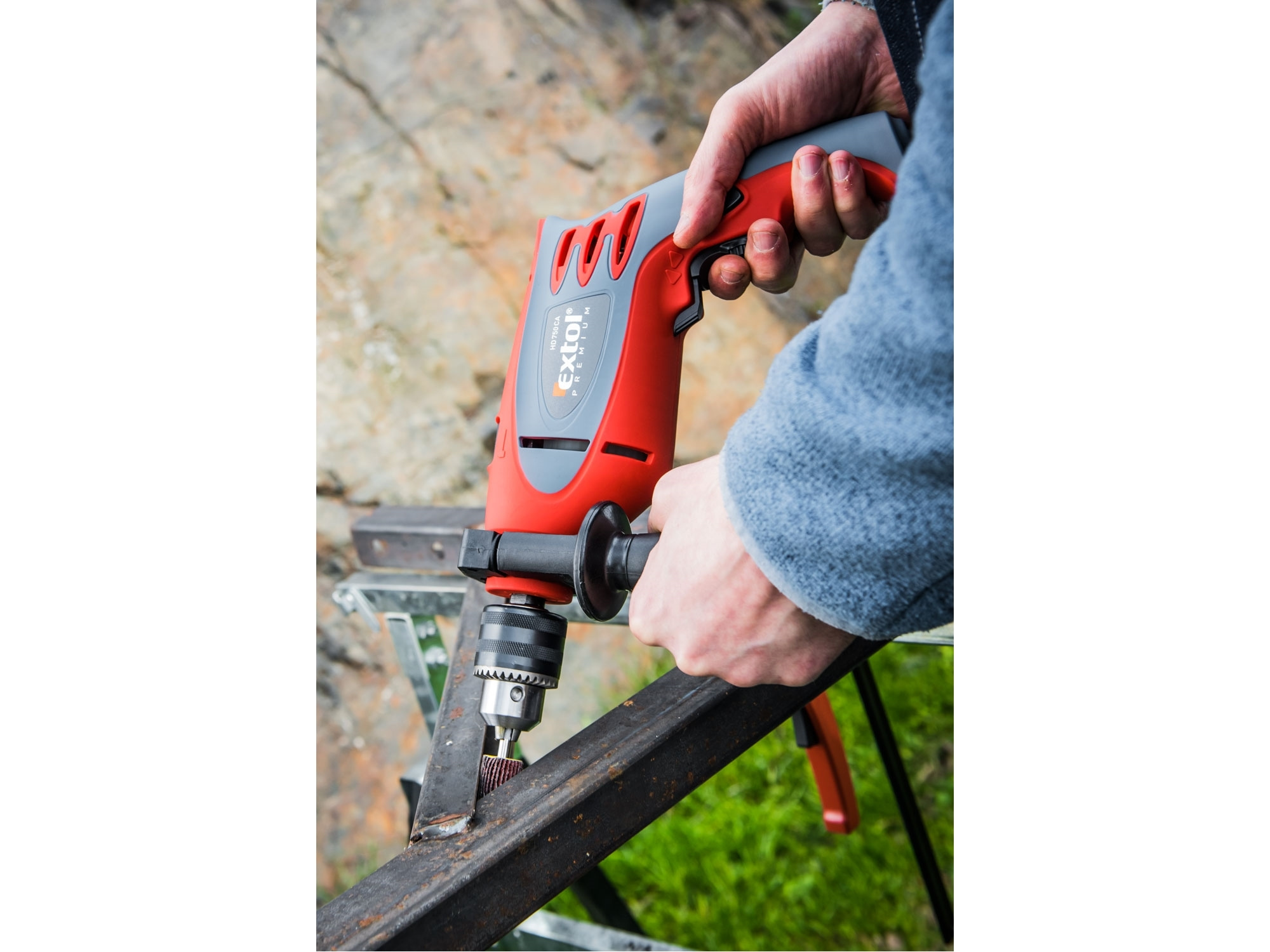 Výkonná příklepová vrtačka vhodná pro vrtání do různých materiálů včetně zdiva a pórobetonu.