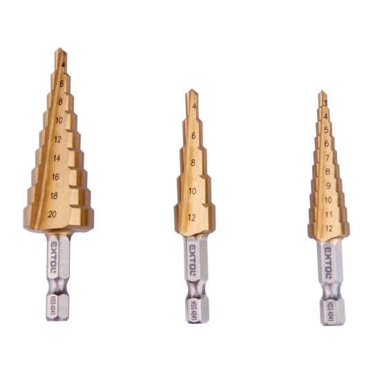 vrtáky stupňovité, sada 3ks, O 3-20mm, HSS