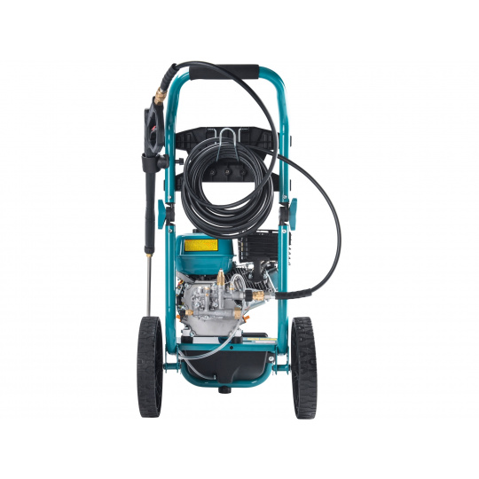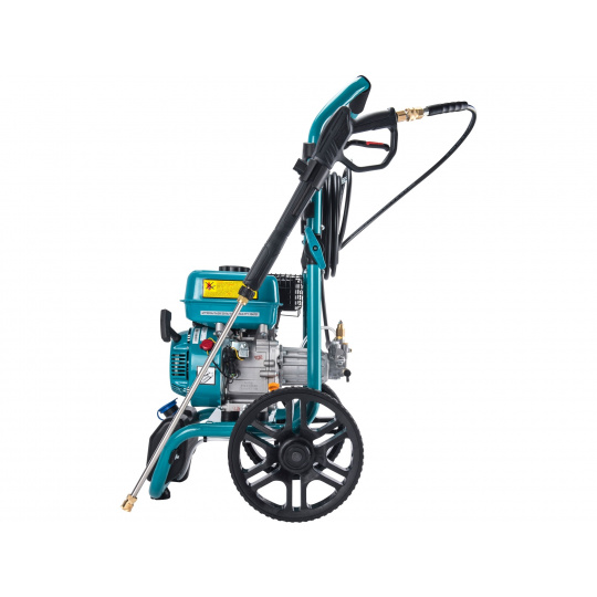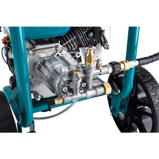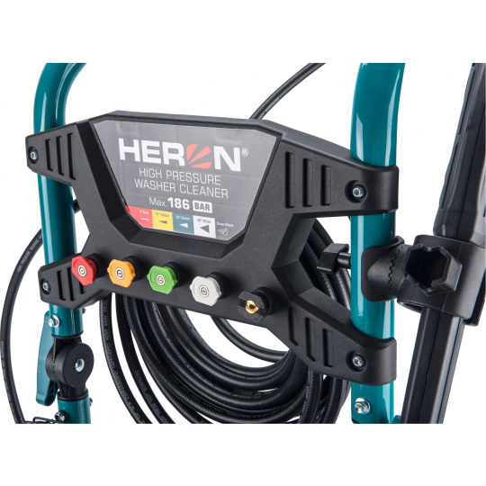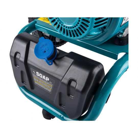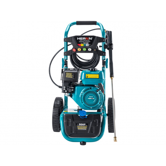 Lehký vysokotlaký motorový vodní čistič vyniká vysokým tlakem vody na výstupu – až 186bar, který zaručuje jeho vysoký čistící výkon. Srdcem čističe je kvalitní HERON motor a čerpadlo italské značky AR, které mu dávají vysoký výkon a dlouhou životnost. Stroj je tak určen k velice efektivnímu a rychlému čistění povrchů a ploch z kamene, dřeva, kovu, plastu jako např. chodníků a teras za účelem odstranění mechu a řas, dále fasád domů, zahradního nářadí, zemědělských strojů atd. Hlavní uplatnění nachází tento výrobek na stavbách, po povodních, čištění aut a zemědělské techniky a pro místa kde není vždy dostupný el. proud a je třeba vyčistit větší plochy. Na jednu 3,6l nádrž benzínu můžete nepřetržitě pracovat 2h. Čistič má kompaktní konstrukci s velmi malým půdorysem a v rámu je zabudovaná nádoba pro saponát, který se používá pro šamponování. Tlaková hadice s ocelovou výztuhou ma na obou koncích kompatibilní rychlospojky a pokud potřebujete delší dosah hadice můžete zapojit dvě za sebou. Sklopitelné madlo a pevná kola, která jsou součástí dodávky, umožňují snadný převoz stroje na místo použití podobným způsobem jako cestovní zavazadlo s madlem a kolečky. Součásti dodávky je 5 trysek (0º, 15º, 25º, 40º a šamponovací), 10m tlaková hadice s rychlospojkami a stříkací pistole s hubicí. Pomocí adaptéru 8895231 lze na stroj připevnit spoustu dalšího příslušenství v naší nabídce.