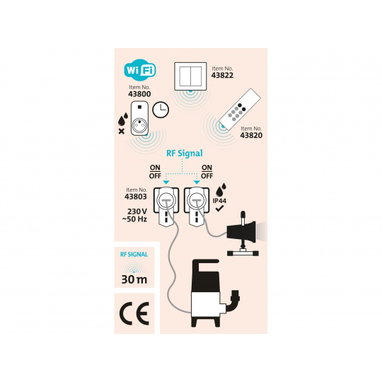 zásuvka dálkově ovládaná, venkovní IP44, 2ks, rozšiřující sada, IP44, dosah 30m