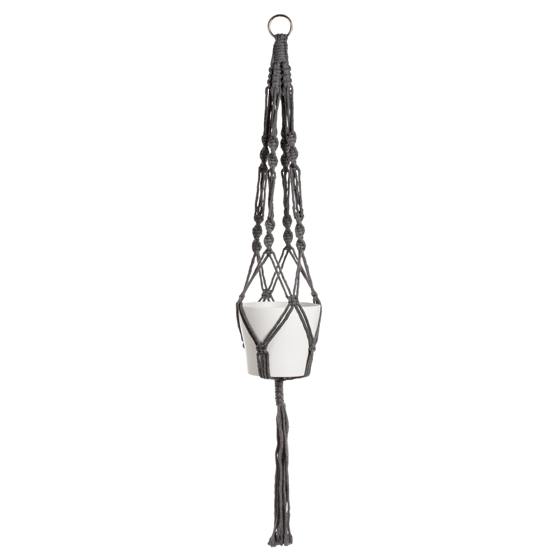 Praktický bavlněný závěs v přírodní šedé barvě pro zavěšení keramických květináčů.