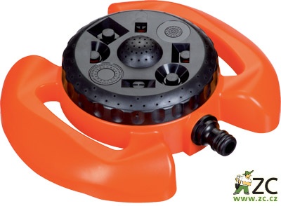 Multifunkční trávníkový zavlažovač s velkým podstavcem a nastavitelnými kropícími tryskami pro kropení trávníku, záhonů, keřů atd. Vhodné pro malé a střední plochy. Nabízí 8 - funkcí možného zavlažování. Maximální průměr zavlažovací plochy 10m.
