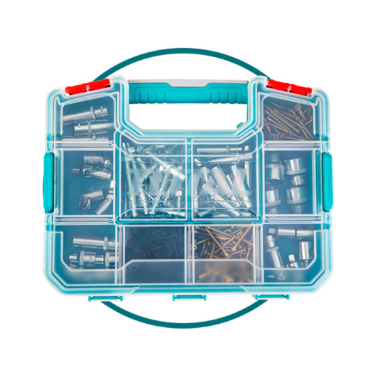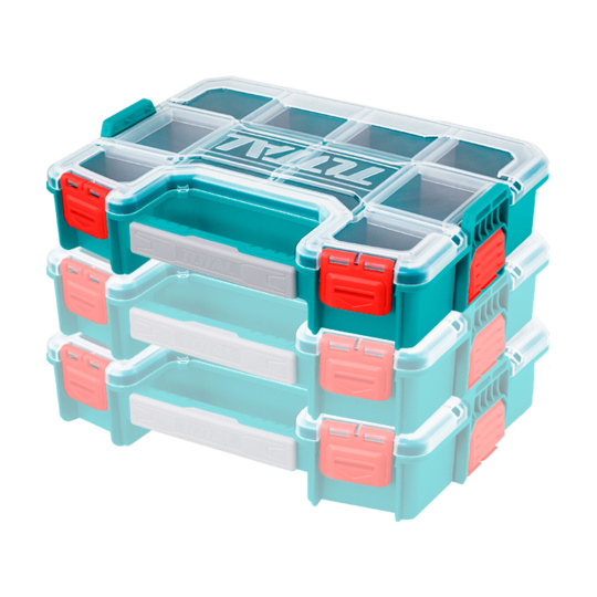 Plastový organizér, Velikost: 305 mmx230 mmx65 mm, Lze skládat dohromadyMateriál: PP, Odnímatelné přepážky, Baleno v kartonové krabici.