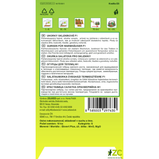 Zelseed Okurka salát. - Vesna F1 partenokarp. fol. sklen. 10s