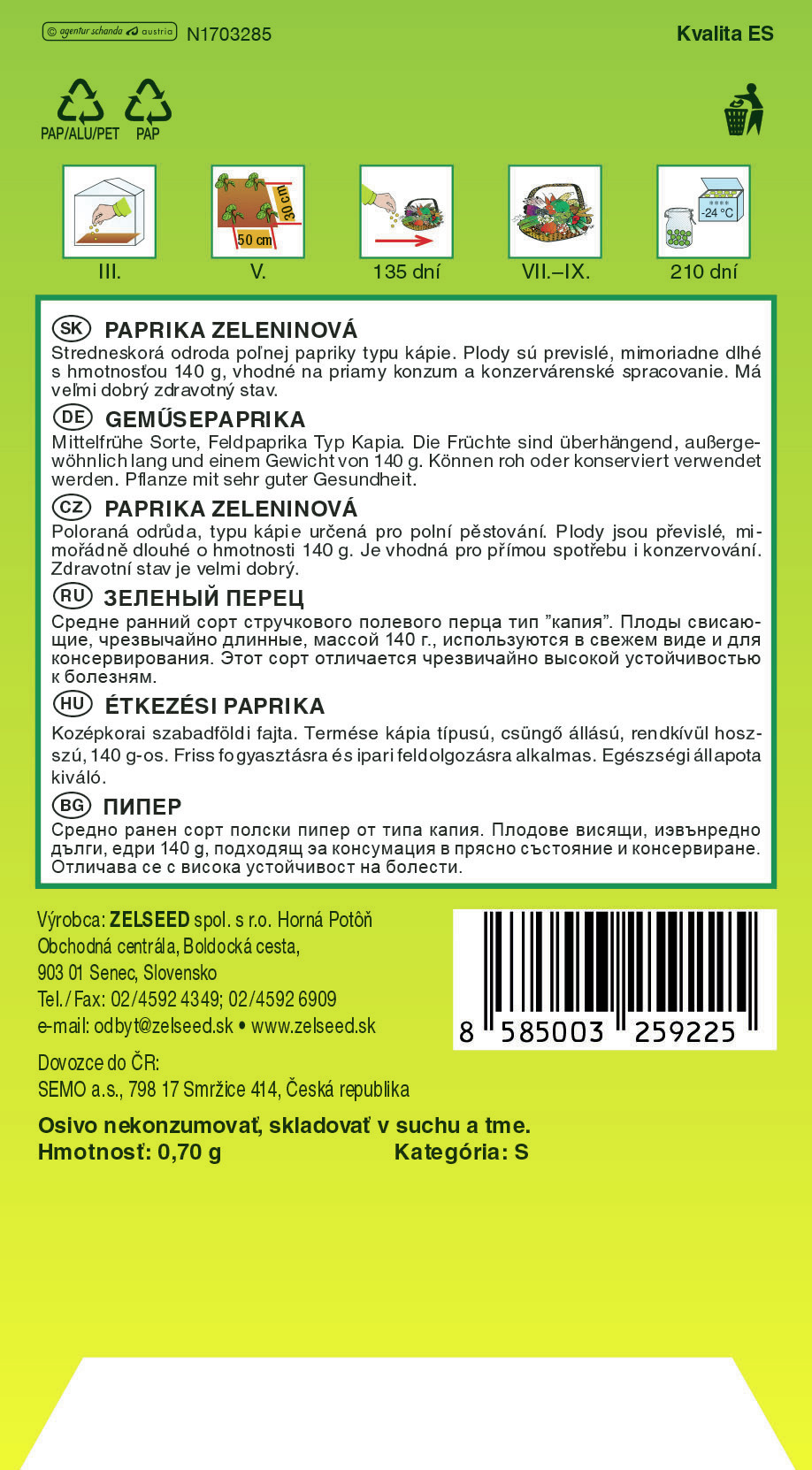 Zelseed Paprika zel. kapie - Derma pole 0,7g