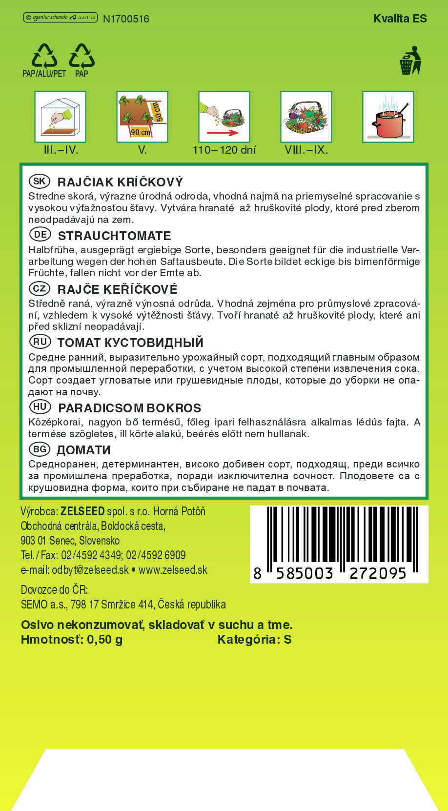 Středně raná výrazně výnosná odrůda vhodná zejména pro průmyslové zpracování vzhledem k vysoké výtěžnosti šťávy. Tvoří hranaté až hruškovité dvou až tříkomorové plody o hmotnosti 70-90 gramů, které před sklizní neopadávají na zem. Délka vegetační doby od výsevu je 110-120 dní.