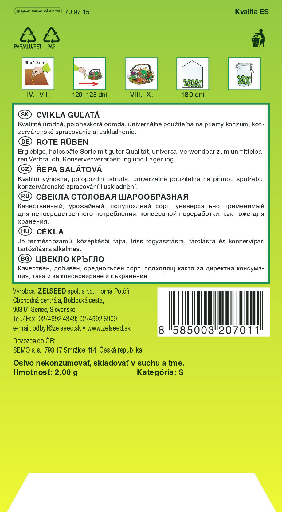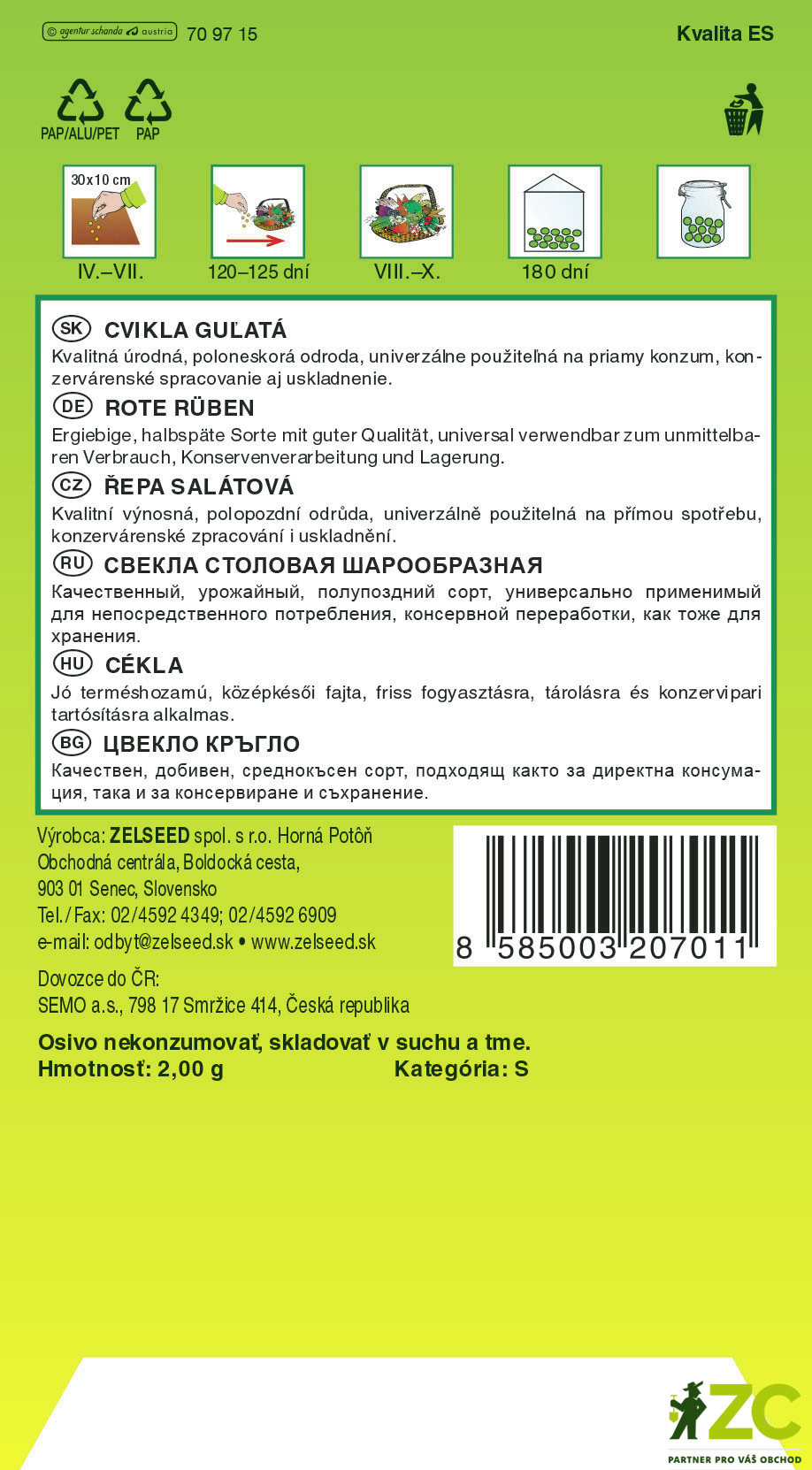 Kvalitní výnosná polopozdní odrůda. Je univerzálně použitelná na přímou spotřebu, konzervárenské zpracování i uskladnění. Řepa salátová / Beta vulgaris L. var. conditiva Alef.Popis:Vhodná prakticky do všech našich pěstebních oblastí. Nejlepší výnosy dává v místech se stejnoměrně rozdělenými srážkami, v půdách od jílov... viac