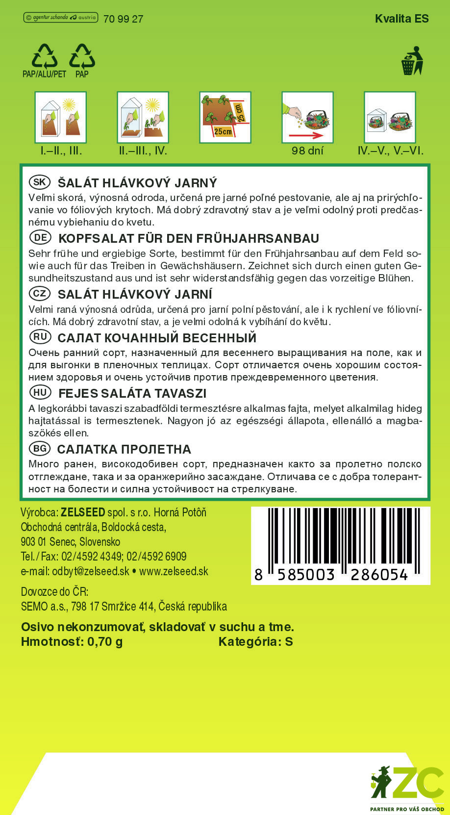 Zelseed Salát jarní - Král Máje I. raný 0,7g