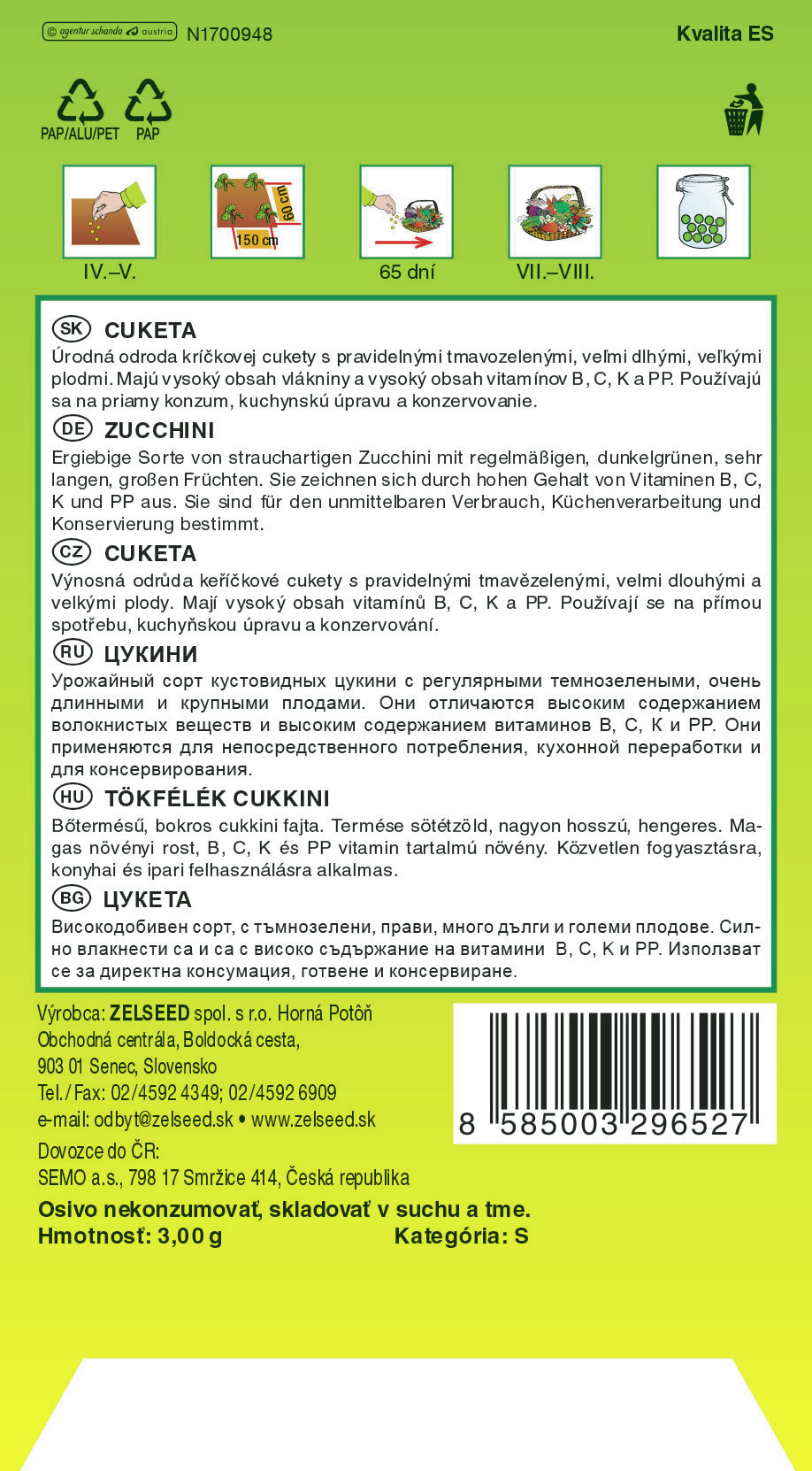 Zelseed Tykev cuketa - Mestik keříčková, tm.zelená 3g