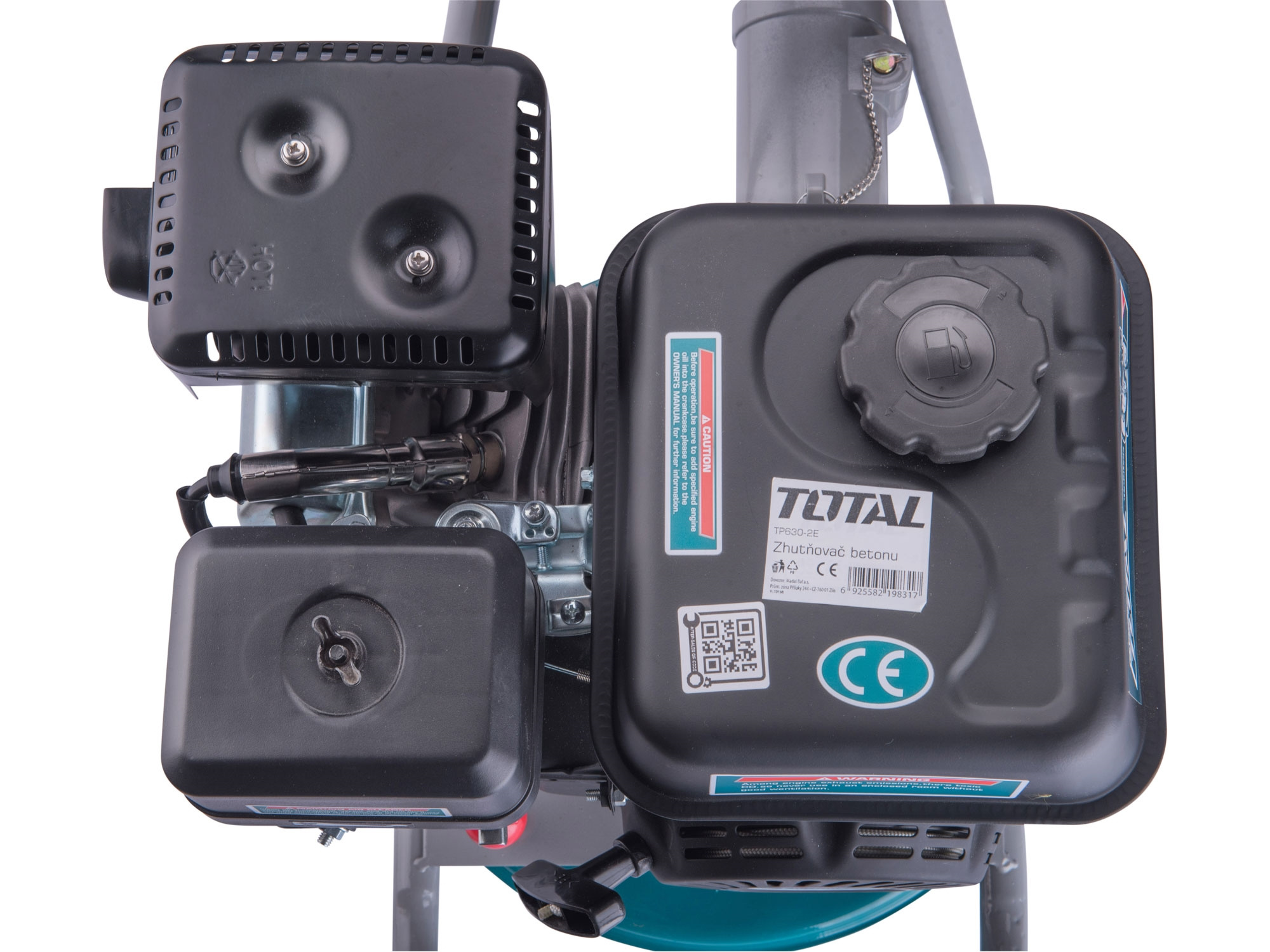 Mobilní motorový zhutňovač betonu Total je osazen výkonným motorem Loncin o maximálním výkonu 4,8kW. Určen pro náročnější stavby, kdy je potřeba delší provozní zapojení a vyšší náročnost. Provozní výkon motoru dosahuje 3500ot/min, 6,5HP. Objem nádrže zhutňovače je 3,6 litru. Motor pracuje na bezolovnatý 95 octanový benzín. Hmotnost zhutňovače je 23kg při rozměru 44x44x52. Hadici pro vibrátor do betonu je nutno dokoupit zvlášť.