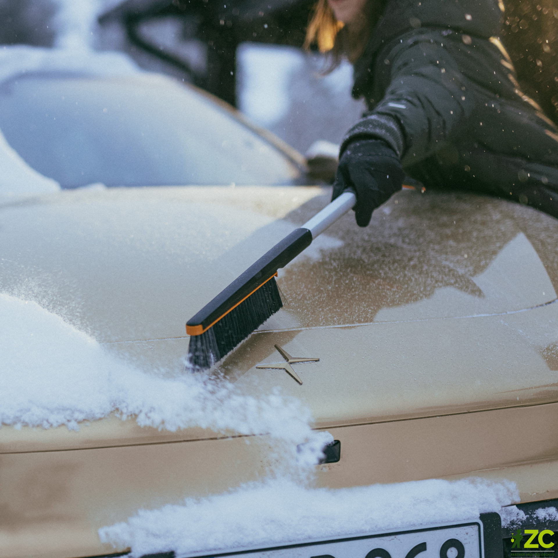 - Integrovaná metlička – husté štětiny umožňují rychlé a efektivní odstranění sněhu z karoserie a oken.