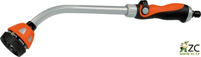 Multifunkční postřikovací tryska na prodloužené hliníkové rukojeti s ohebnou hadicí umožňuje nastavení rozstřiku a dosažení i vzdálenějších míst. Délka: 46 cm.