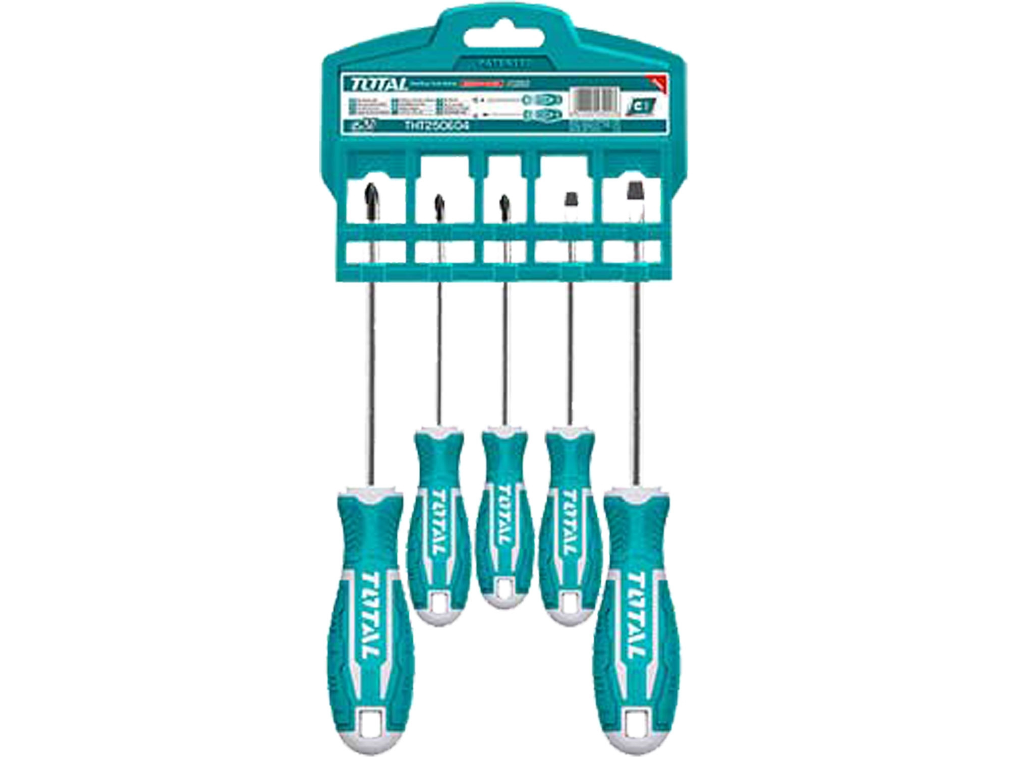 Sada 5 ks šroubováků, Nový design rukojeti, Materiál: CRV, Kulatá čepel1ks SL5..5x100mm, 1ks SL6,5x100mm, 1ks PH1x100mm, 1ks PH2x125mm, 1ks PH0x75mm.