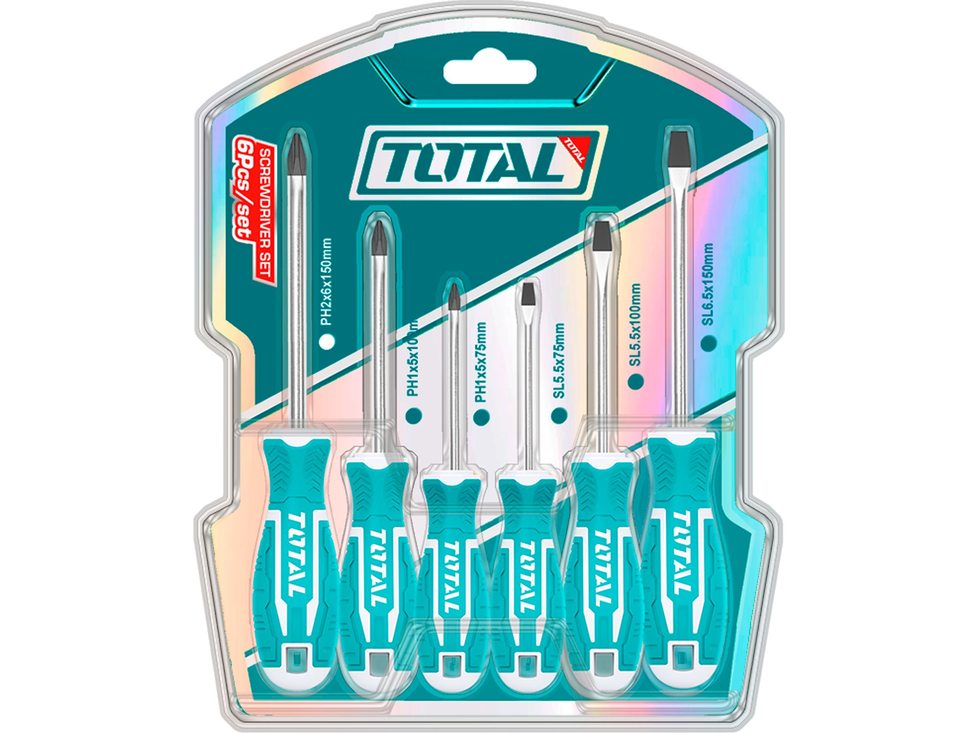 nový design rukojetí TOTAL 3ks plochých šroubováku a 3ks šroubováků křížových kvalitní chrom vanadová ocel