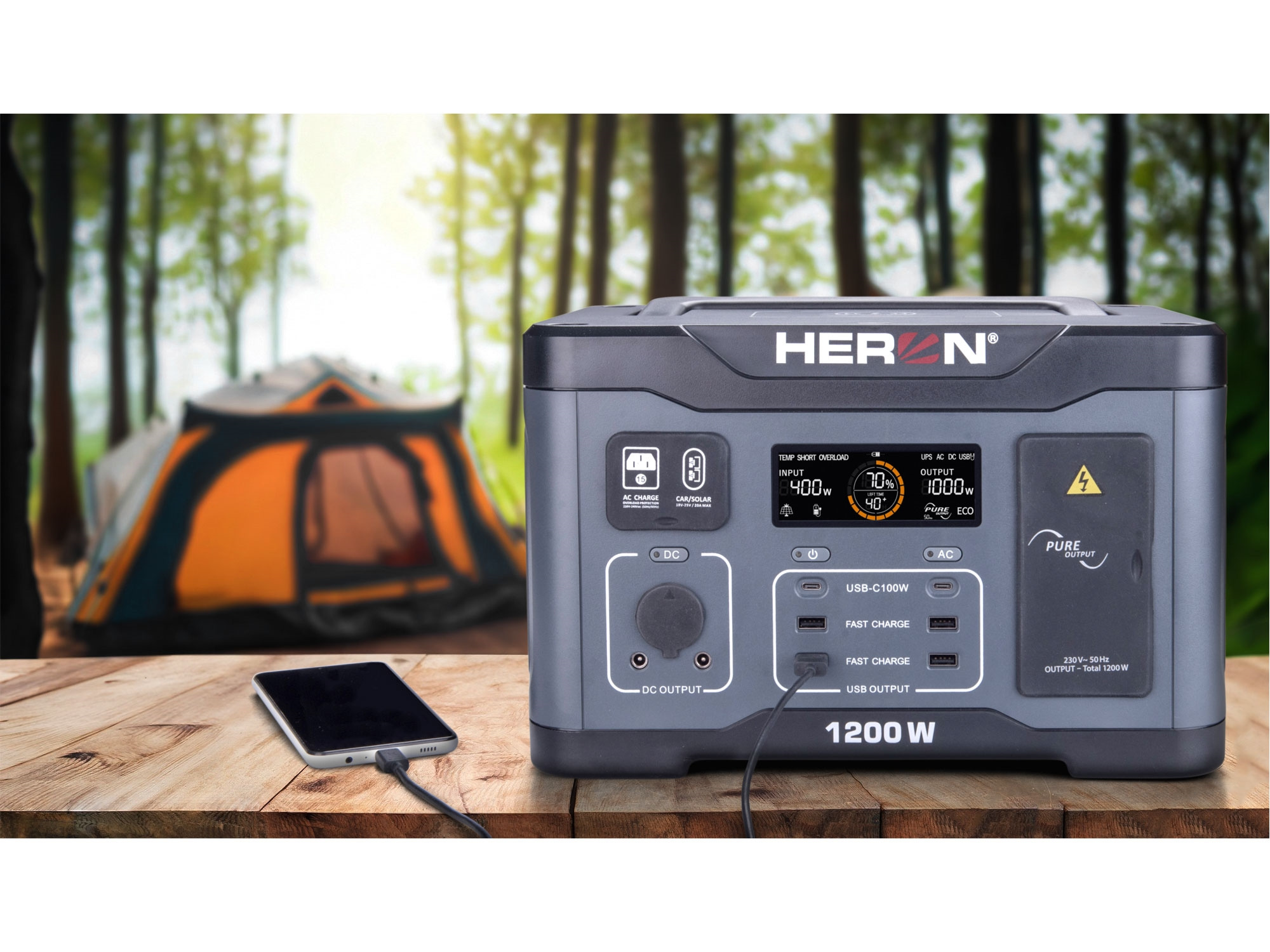 Nabíjecí stanice s maximálním výkonem 2400W a provozním výkonem 1200W je ideálním řešením pro náročné uživatele, kteří potřebují spolehlivý zdroj energie na libovolném místě. Ať už pracujete na stavbě, cestujete do přírody, nebo chcete mít doma záložní zdroj, tato stanice zvládne napájet notebooky, nářadí, osvětlení i střední spotřebiče. S kapacitou 921Wh zajistí dostatek energie pro dlouhé hodiny provozu, aniž byste museli hledat zásuvku. Srdcem stanice je nová LiFePO4 baterie, které vydrží tisíce nabíjecích cyklů, a i po letech bude stále fungovat na 80% původní kapacity. Tyto baterie jsou odolné vůči extrémním teplotám, přehřátí i hlubokému vybití, což z nich dělá nejbezpečnější volbu pro každodenní použití. I přes svůj výkon zůstává stanice překvapivě lehká a přenosná. Stanice je vybavena dvěma výstupy USB-C (podporujícími Power Delivery), dvěma výstupu USB-A (podporujícími QuickCharge), DC porty, bezdrátovým nabíjením a dvěma 230V zásuvkami, což z ní dělá univerzálního pomocníka. Snadno vám nabije smartphone, tablet, notebook, fotoaparát nebo bude napájet lednici, projektor, rychlovarnou konvice i středně náročné nářadí. Inteligentní řídicí systém automaticky rozpozná typ zařízení a optimalizuje výkon, aby bylo nabíjení rychlé a šetrné. Přehledný LCD displej zobrazuje zbývající kapacitu, výkon a čas do úplného vybití – vše máte pod kontrolou. Díky velmi rychlé odezvě na výpadek proudu, lze také krátkodobě používat jako UPS. Pro nabíjení stanice lze také využít mnoho různých zdrojů. Od klasické 230V rozvodné sítě, přes nabíjení z 12V zdrojů pomocí autozásuvky, až po vysoce mobilní nabíjení ze solárních panelů se standardním MC4 konektorem, které lze postavit prakticky kdekoliv. Stanice je vybavena technologií MPPT, která maximalizuje účinnost přenosu energie ze solárních panelů do baterie. Robustní, ale elegantní design s vyklápěcí rukojetí zajišťuje snadné přenášení, ať už ji potřebujete do kanceláře, na kempování, nebo na festival. Na zadní straně stanice je LED světlo, které lze použít pro osvícení okolního prostoru.