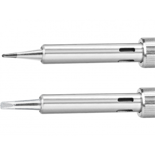 Výkonná mikroprocesorová pájecí stanice s teplotním rozsahem 200-450°C, s LCD displejem a jemnou regulací teploty ±1°C je určena pro profesionální použití při pájení vyžadujícím preciznost a přesnou regulaci teploty pájení – zejména v elektronice a bižuterii, kde se neklade přílišný požadavek na odolnost vůči mechanickému namáhání, ale na přesnost provedení. Pájecí stanice zajišťuje velice rychlé vyhřátí pájecího hrotu na nastavenou teplotu. Mikroprocesorová elektronika neustále snímá teplotu pájecího hrotu a okamžitě reaguje na změny teploty (+/-) čímž udržuje konstantní teplotu, aniž by docházelo k teplotním výkyvům, což je důležité pro pájení citlivých součástek. V případě použití jiného typu pájecího hrotu lze zjištěný rozdíl mezi dosaženou teplotou na hrotu a nastavenou teplotou na displeji vyrovnat funkcí rekalibrace.