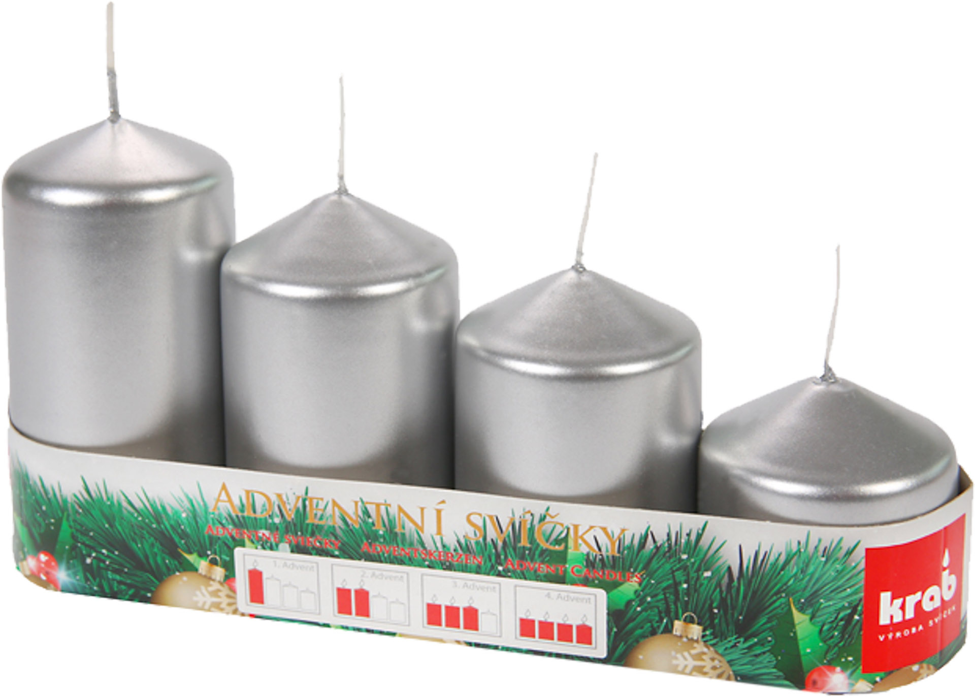Svíčka adventní schody 50x60/75/90/105 mm - metalická stříbrná (4ks)