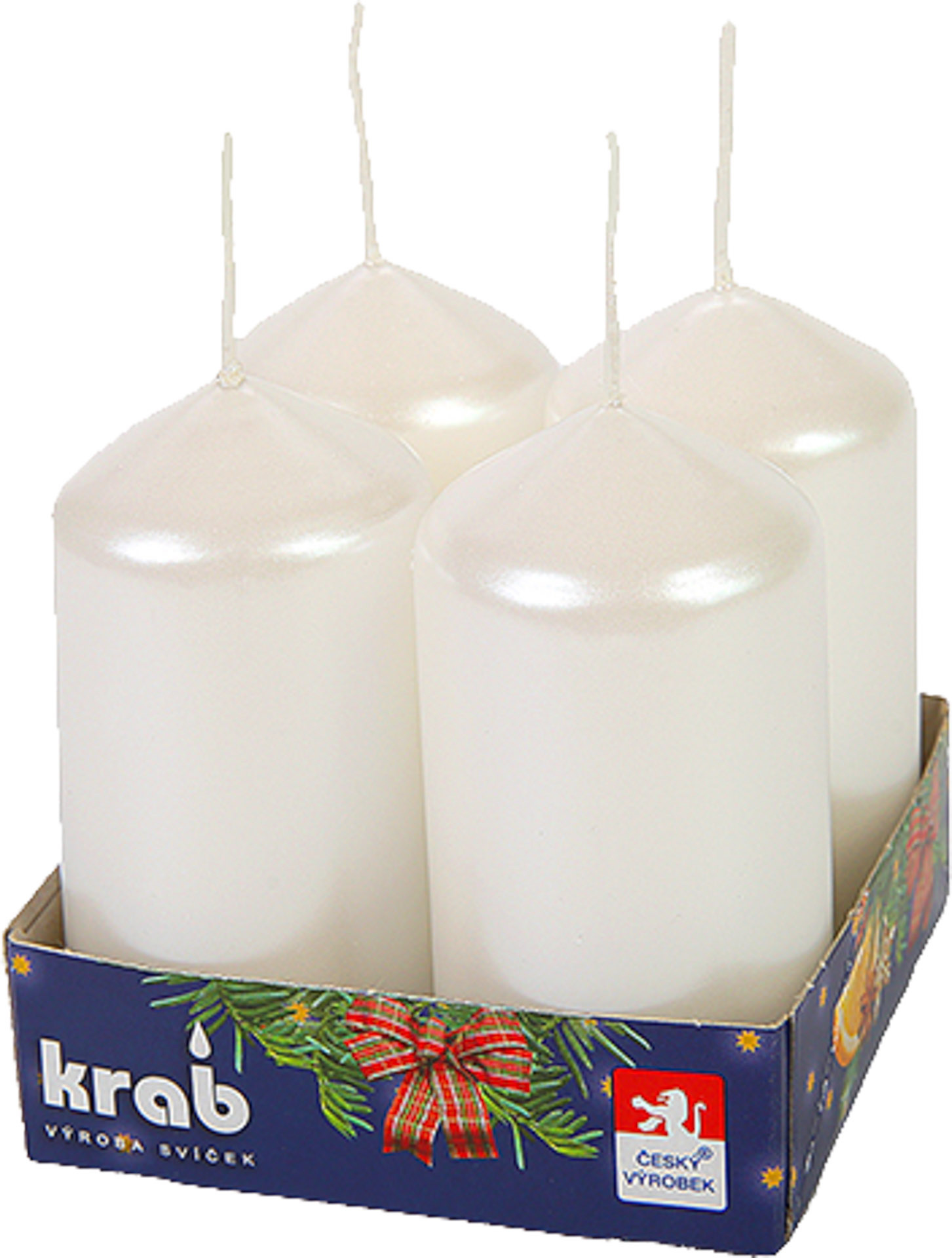 Svíčka adventní válec 40x80 mm - metalická bílá perleť (4ks)