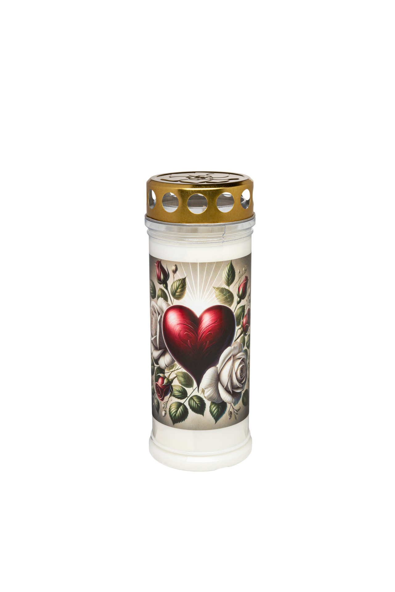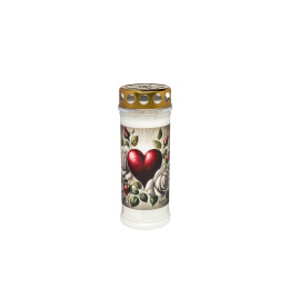Svíčka hřbitovní s víčkem 550 g - motiv Srdce 550 g